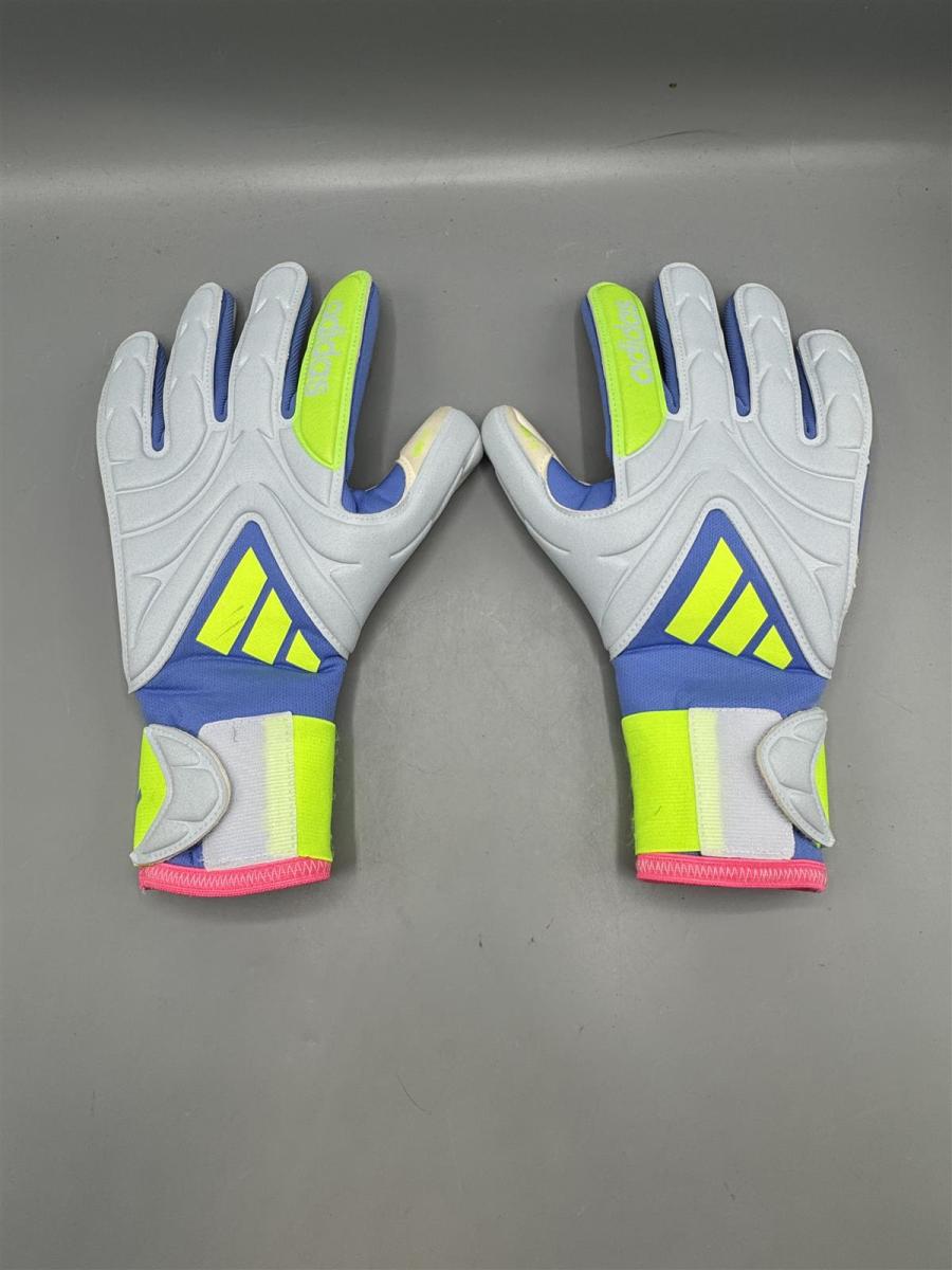 Adidas Maalivahdin Hanskat Copa Pro PC Celestial Victory- Blue maalivahdin hanskat, joissa on kirkkaat värit ja tukeva rakenne. Hanskoissa on hyvä pito ja ne on suunniteltu ammattimaiseen jalkapallokäyttöön. Mukana tulee säilytyspussi, joka helpottaa kuljetusta ja säilytystä. Aikuisen koko 12. Käytetty vain kerran ja todettu liian suuriksi. Ovh 89 euroa.