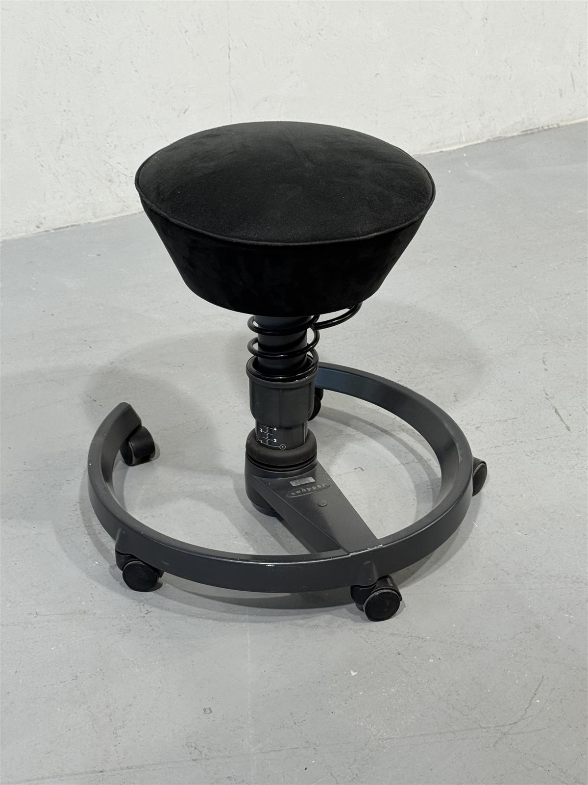 Moderni Aeriksen valmistama Swopper tuoli, joka on suunniteltu ergonomiseen istumiseen. Tuolissa on jousimekanismi, joka mahdollistaa liikkeen istuessa ja edistää aktiivista istumista. Musta verhoilu ja pyörillä varustettu jalusta tekevät siitä käytännöllisen valinnan monenlaisiin työympäristöihin. Korkeudensäätö 52-65cm