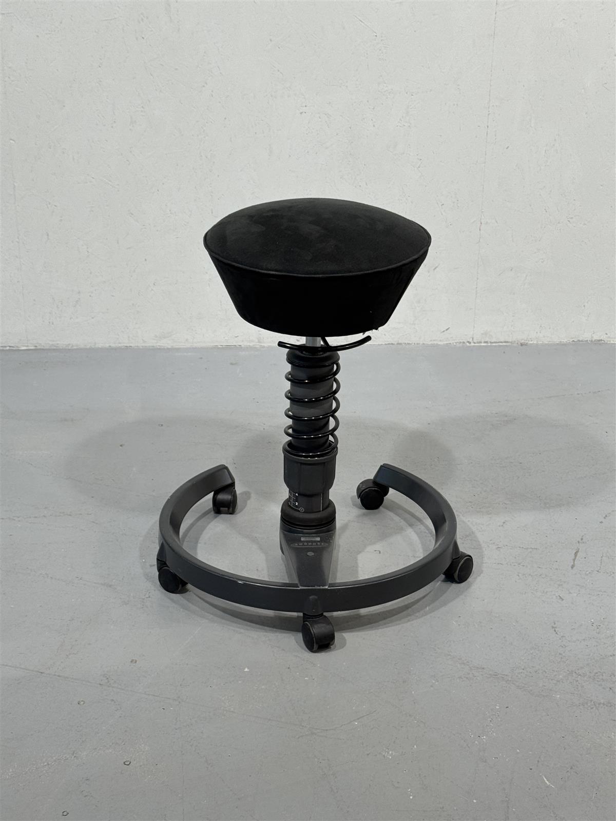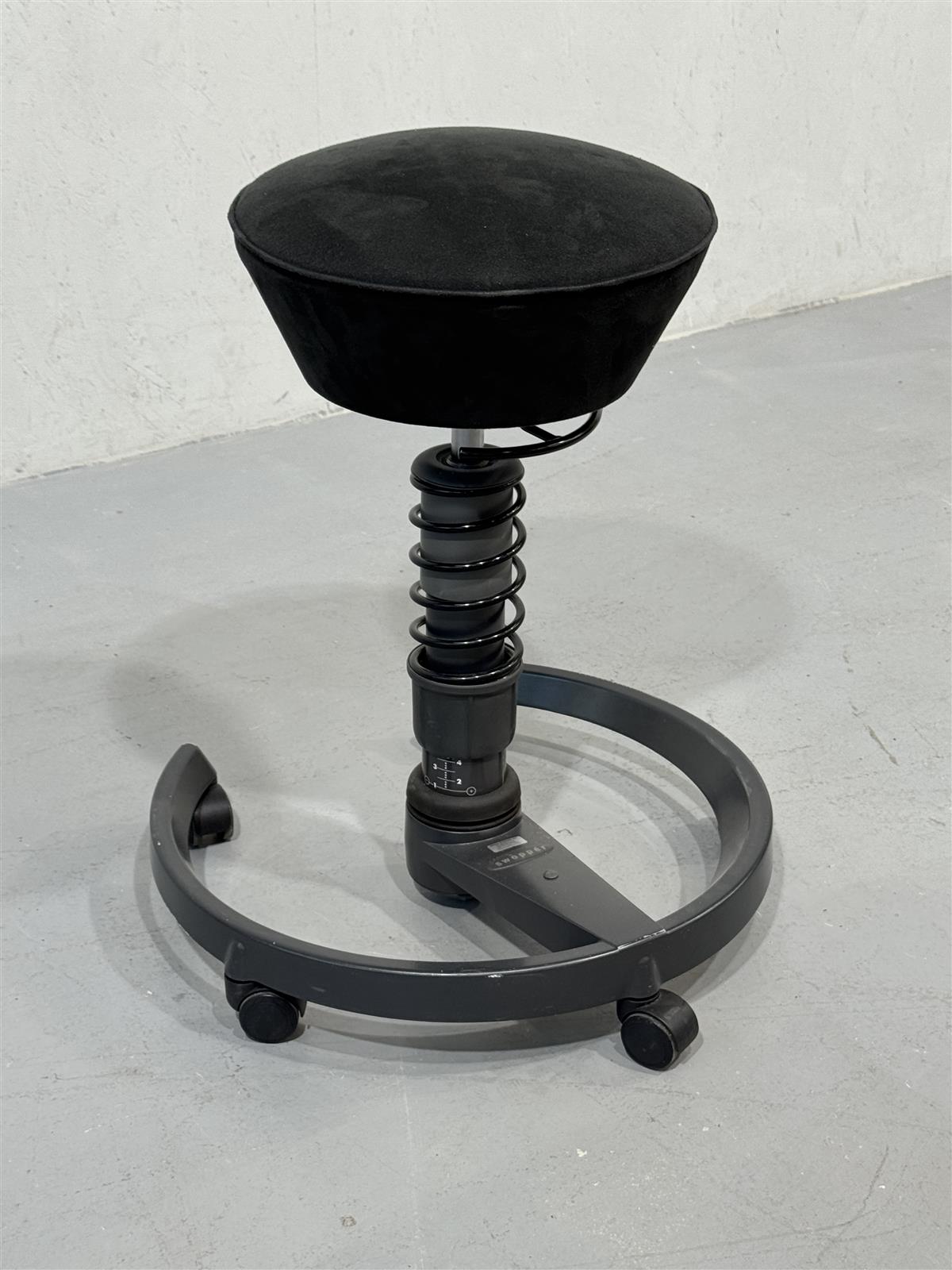 Moderni Aeriksen valmistama Swopper tuoli, joka on suunniteltu ergonomiseen istumiseen. Tuolissa on jousimekanismi, joka mahdollistaa liikkeen istuessa ja edistää aktiivista istumista. Musta verhoilu ja pyörillä varustettu jalusta tekevät siitä käytännöllisen valinnan monenlaisiin työympäristöihin. Korkeudensäätö 52-65cm