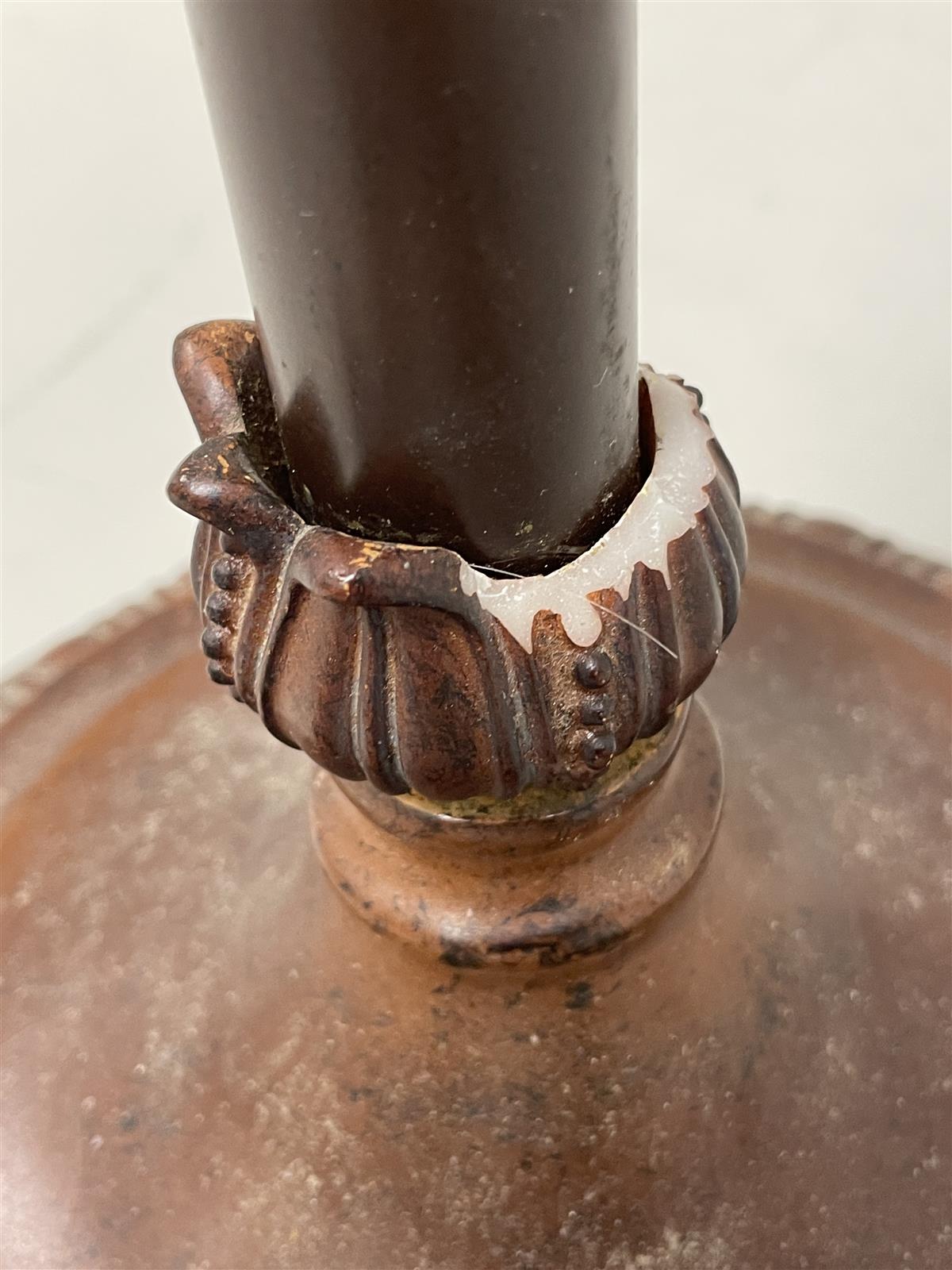 Valaisimessa on havaittavissa kulumaa, erityisesti jalustan alueella.