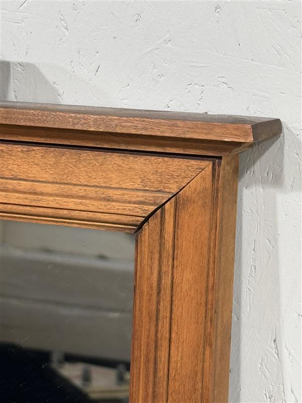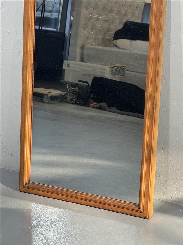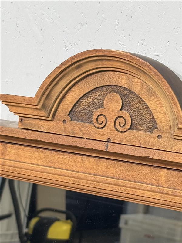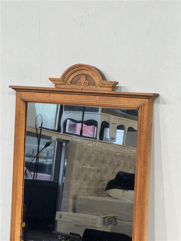 Klassinen peili koristeellisella puukehyksellä. Yläkoriste hieman löysästi kiinni, mutta pysyy.