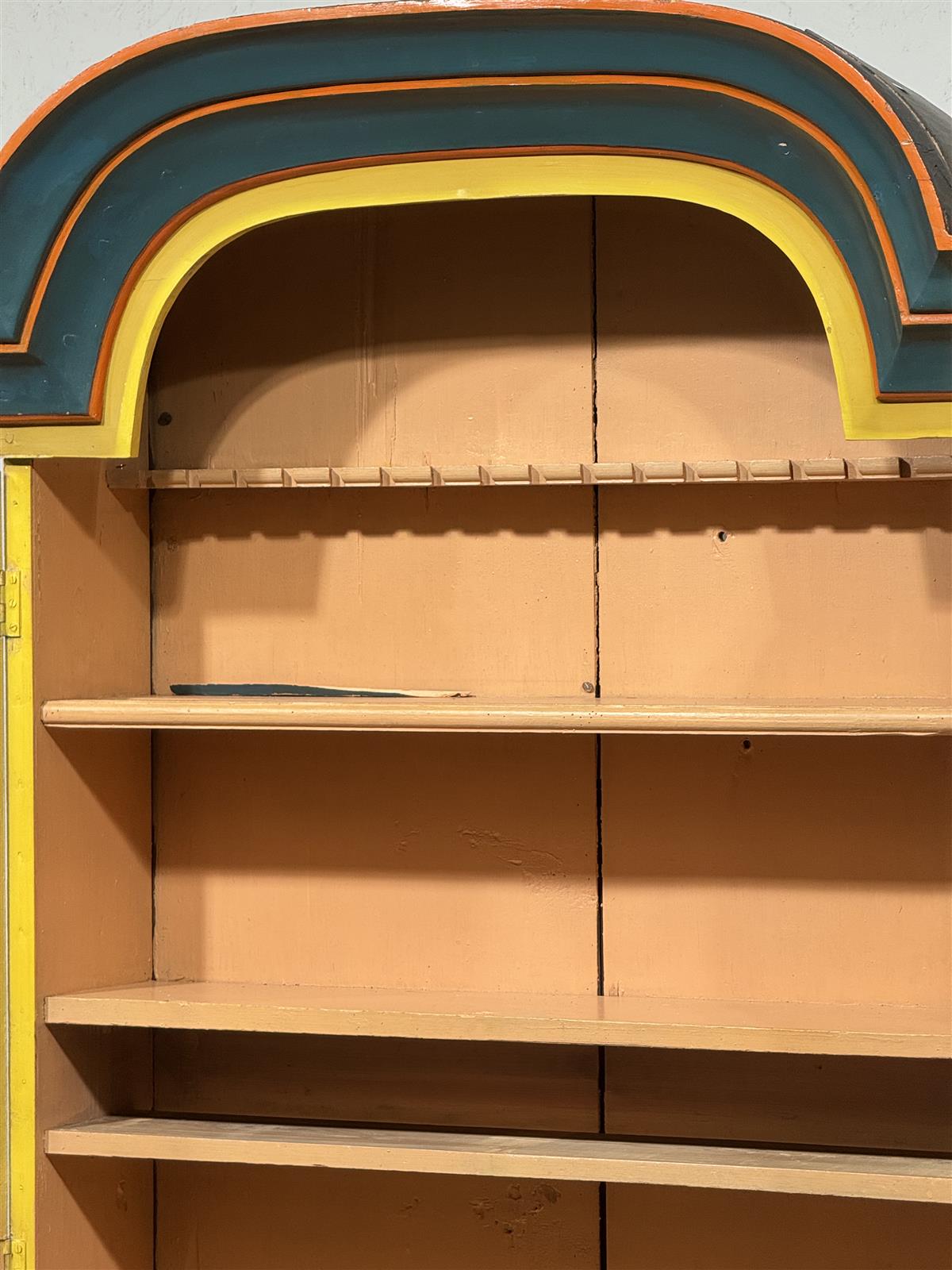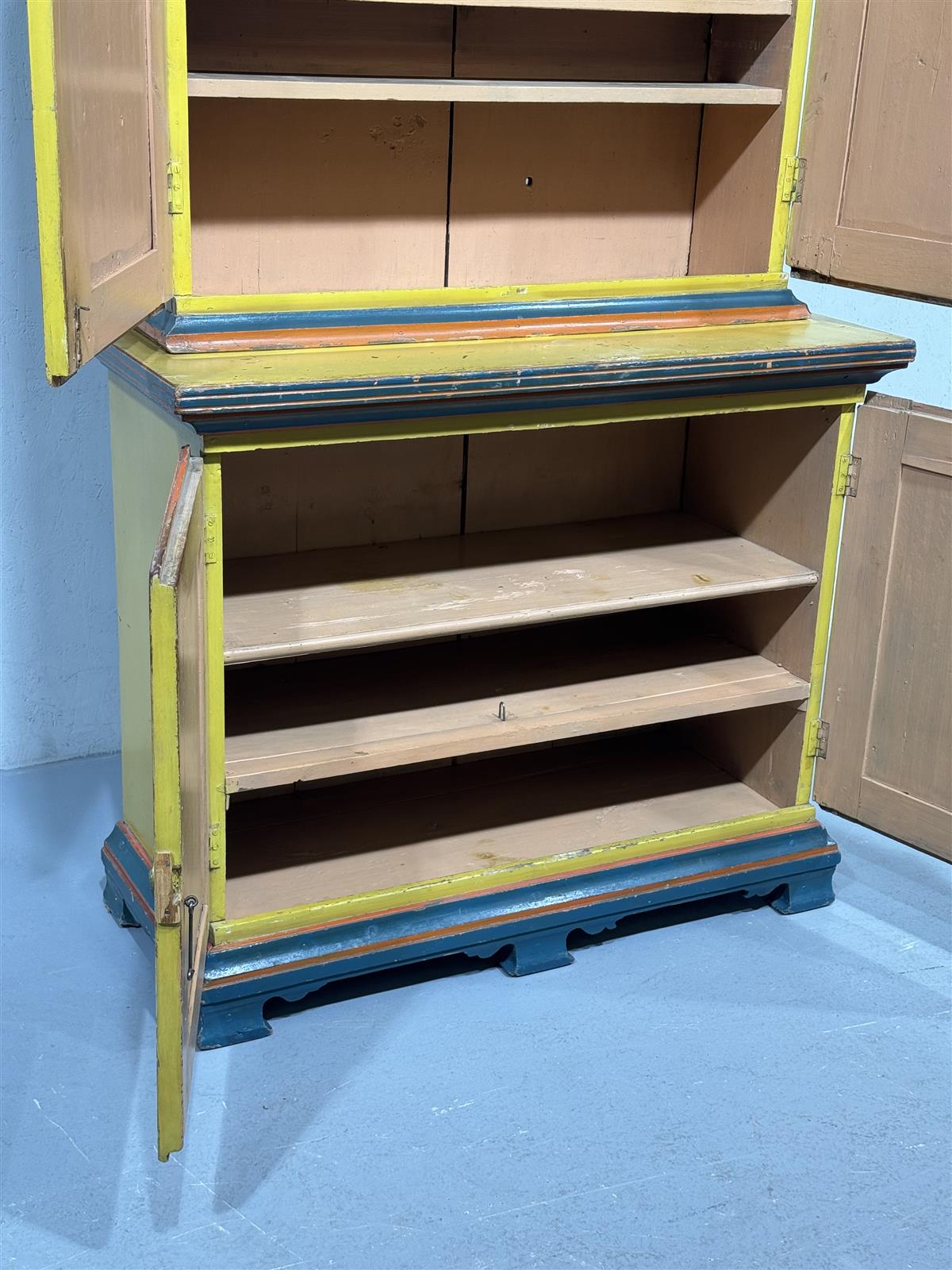 Kaapissa on näkyviä kulumia ja maalipinnan kulumista. Kaappi on 1800-luvulta.