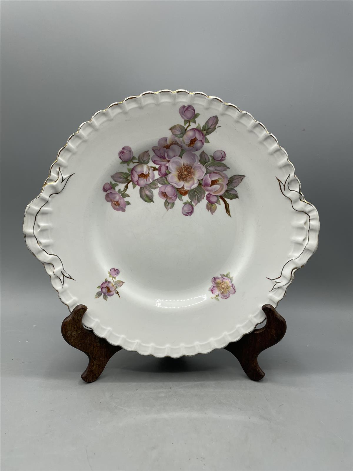 Arabia Diamant Omenankukka tarjoilulautanen, jossa on kaunis kukkakuviointi. Lautasen reunat ovat aaltomaiset ja niissä on kultainen koristereuna.