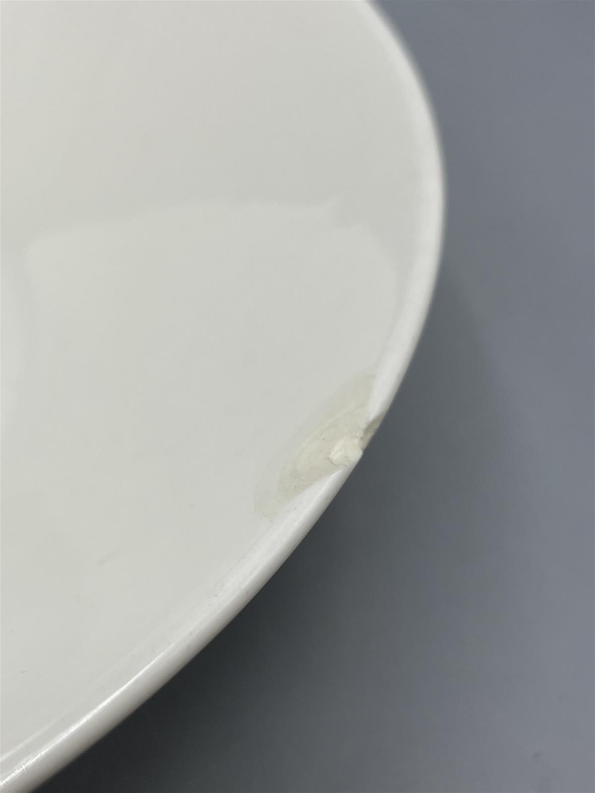yhdessä syvässä(Iittala) lautasessa reunassa lohkeama