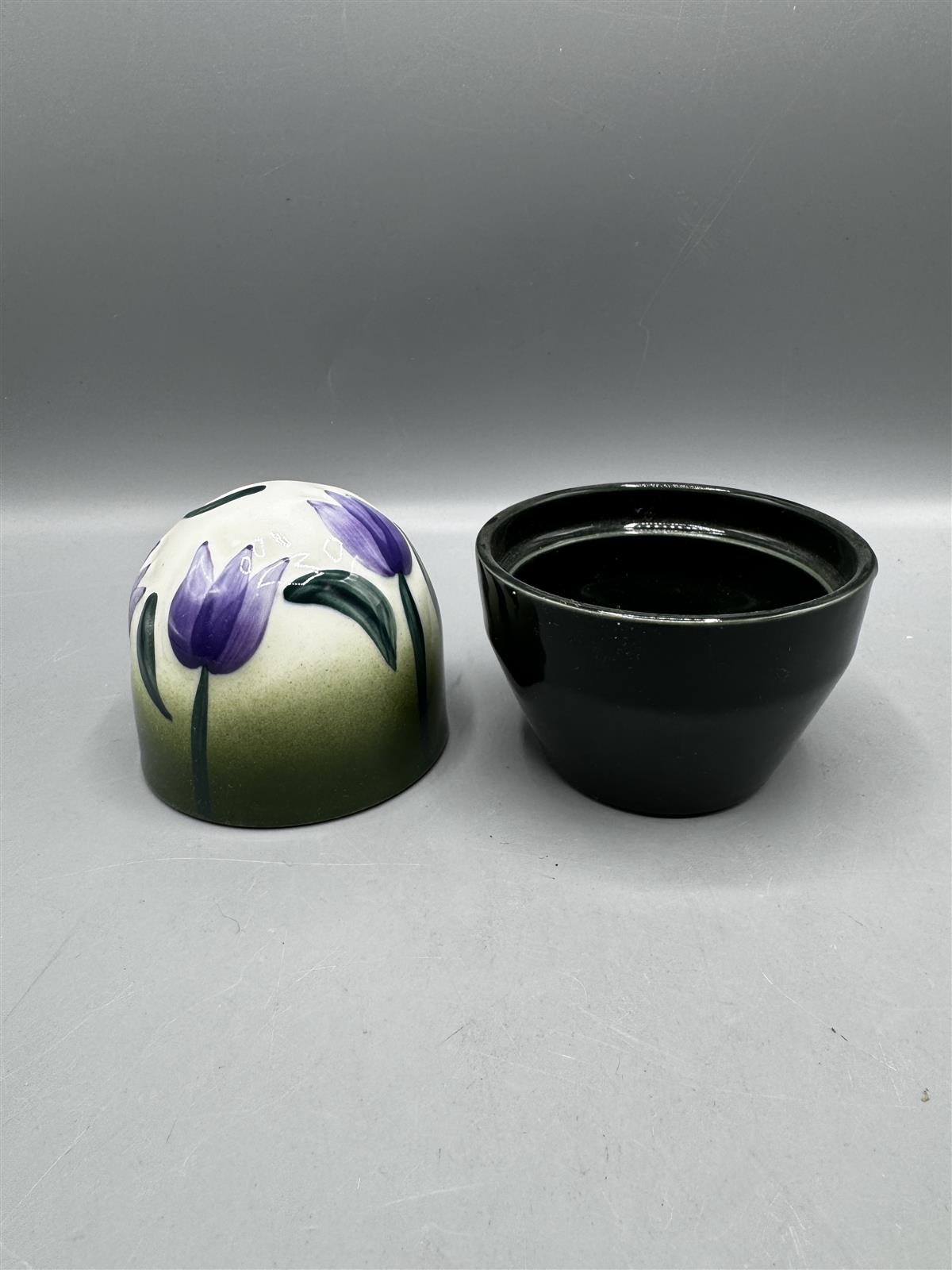Arabian valmistama kukkakuvioinen iki-kukka rasia. Rasia koostuu kahdesta osasta, joissa on violetteja tulppaani kukkakuvioita.