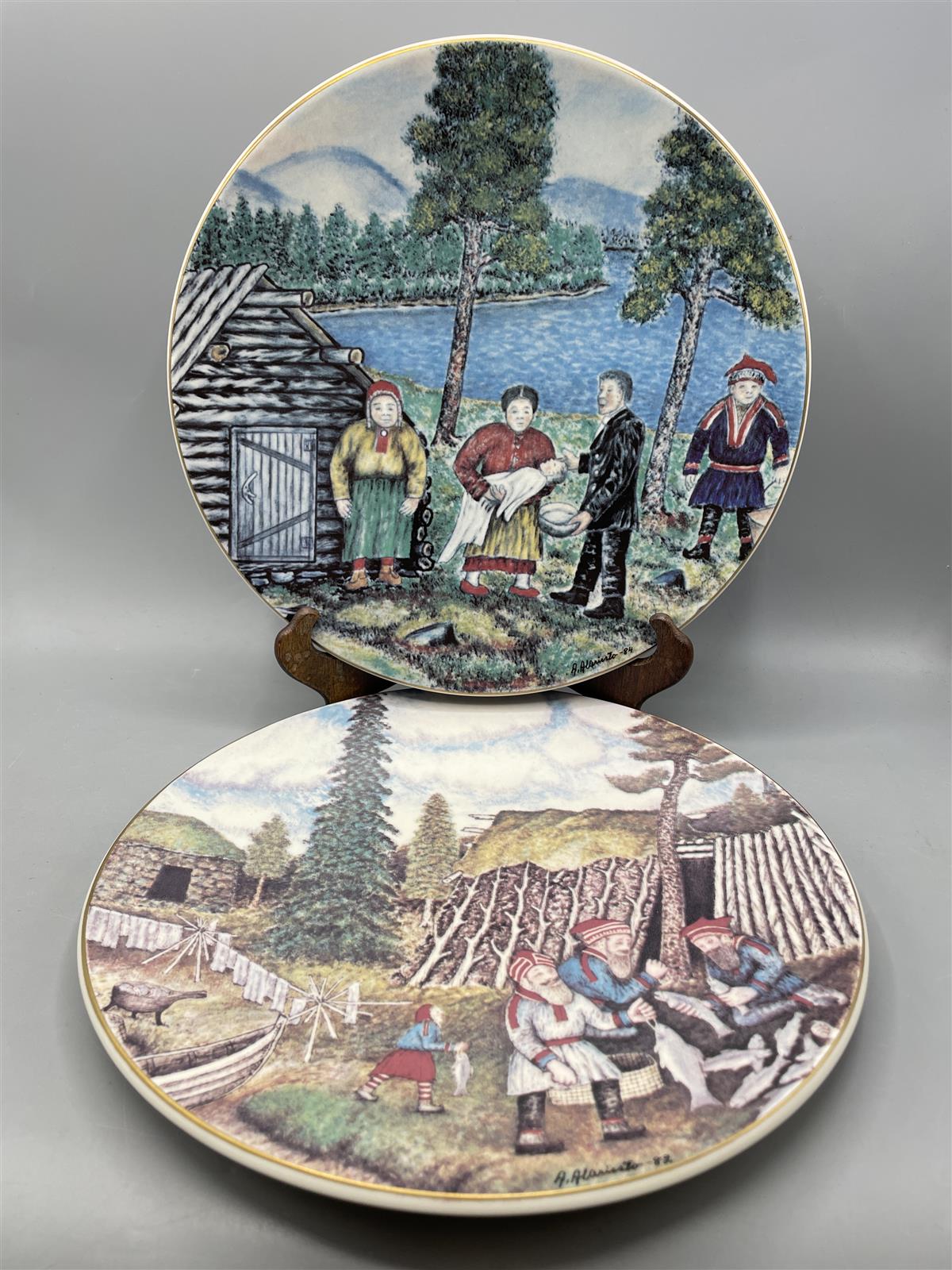 Arabia Lappi isot taidelautaset 6-osaa vuodet 1980-1985.