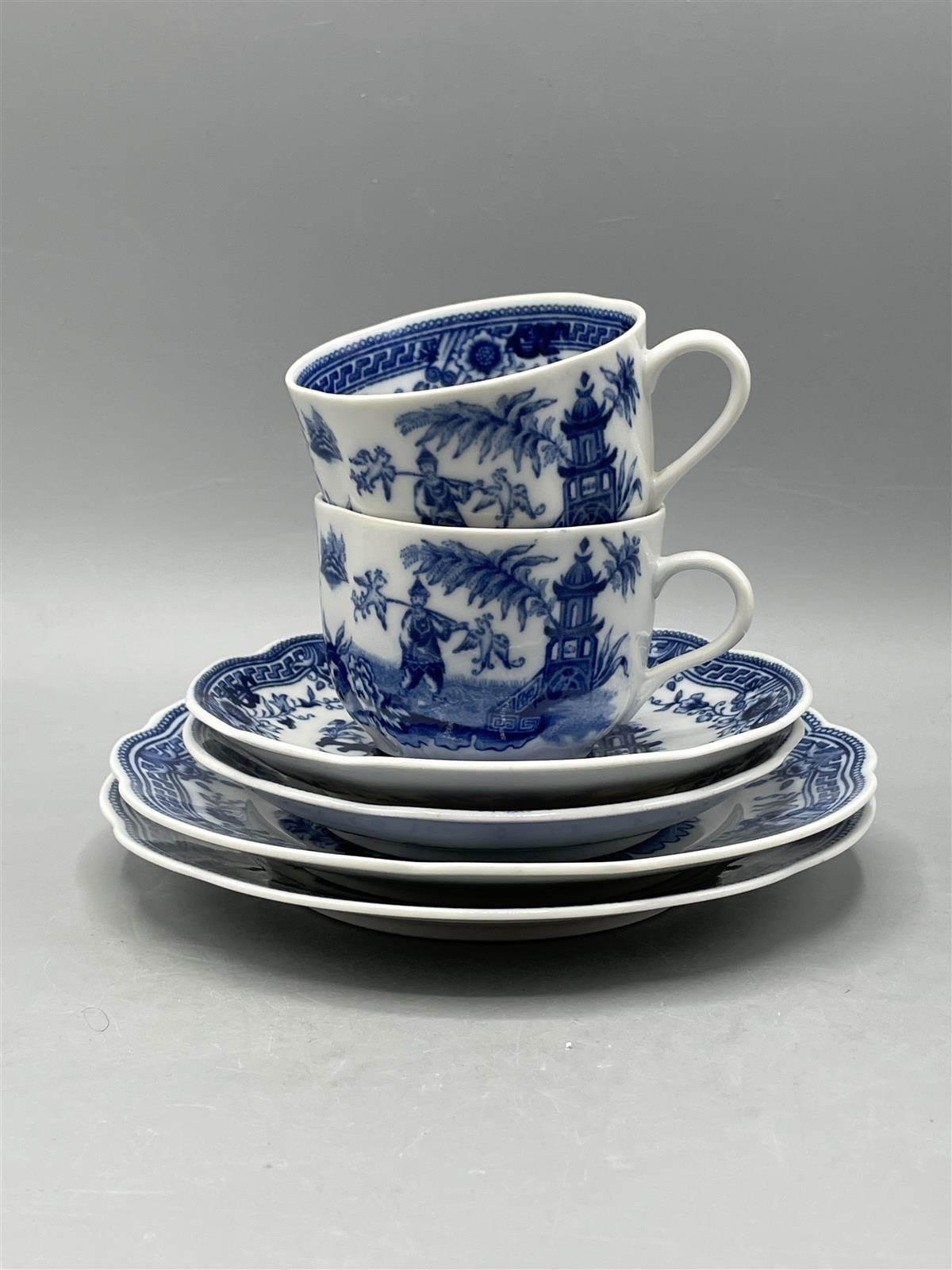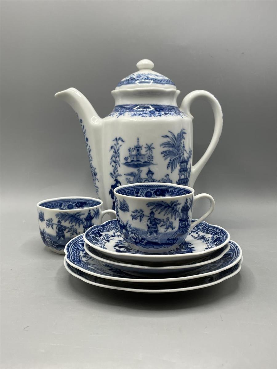 Arabia Singapore sininen Kahvikannu + 2kpl kupit. Kuppi, tassi ja pullalautanen kaikkia 2kpl. Pikkukruunuleima.