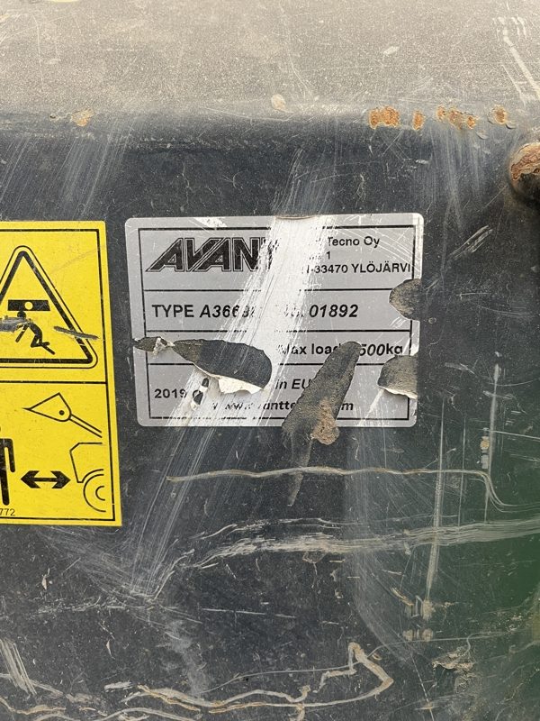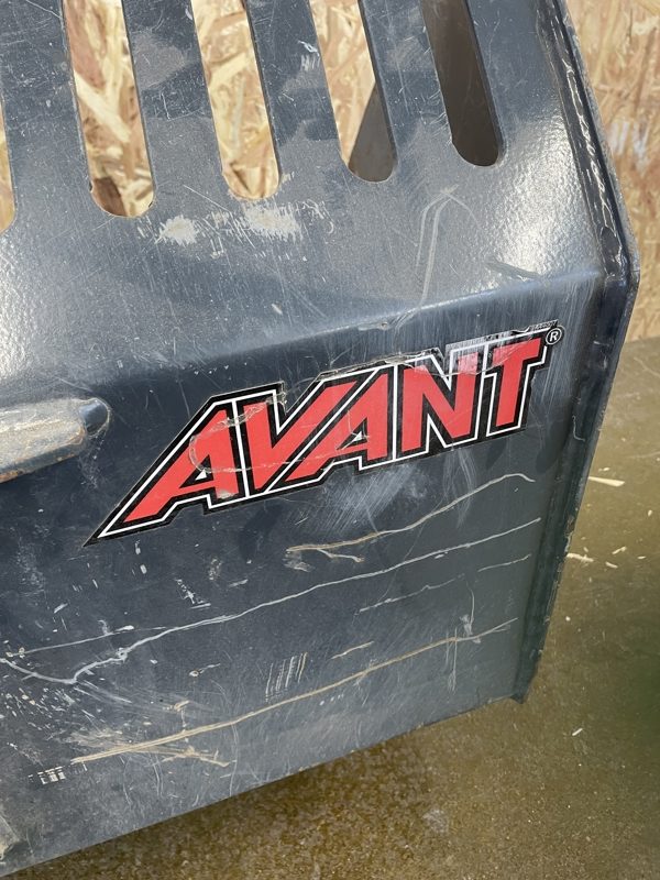 Avant Type A366XX 120cm leveä kauha. Kauhan kiinnikkeet 50cm leveys ja 30cm korkeus (takana). Selkeää kulumaa, mutta rautaa ja toimii!