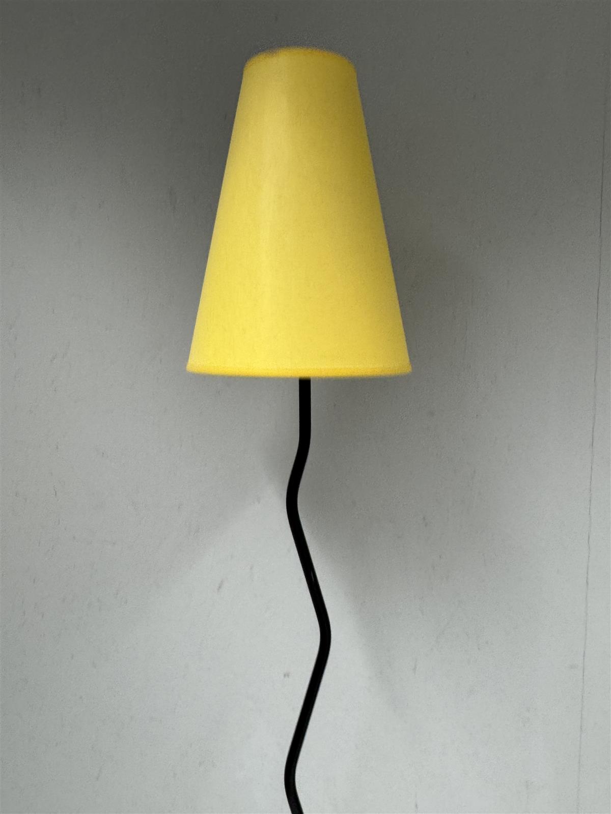 Tyylikäs Belid G17 lattiavalaisin keltaisella varjostimella ja mustalla metallijalalla.