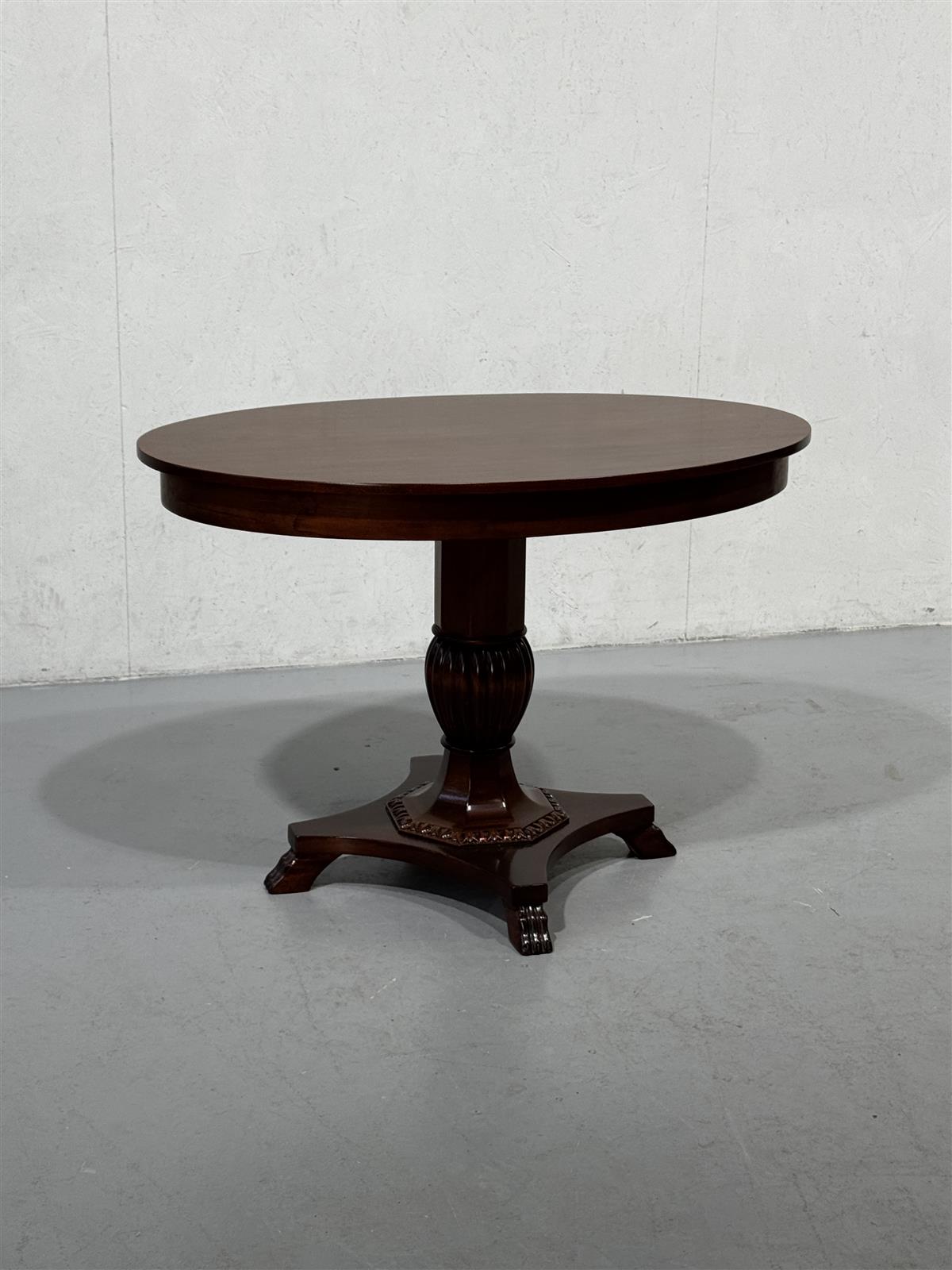 Pöytä edustaa klassista Biedermaier tyyliä, joka sopii monenlaisiin sisustuksiin. Koristeellinen jalka tuo esiin perinteisen muotoilun.