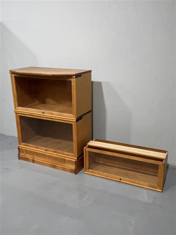 Boknäs klassikkoa, moduuleista tehty vitriini kirjahylly. Sokkeli, syvä lasiovinen moduuli sekä päällä lasiovinen moduuli jossa kulmikas taso. Mukaan samaa väriä oleva kapea moduuli (syvyys 29cm).