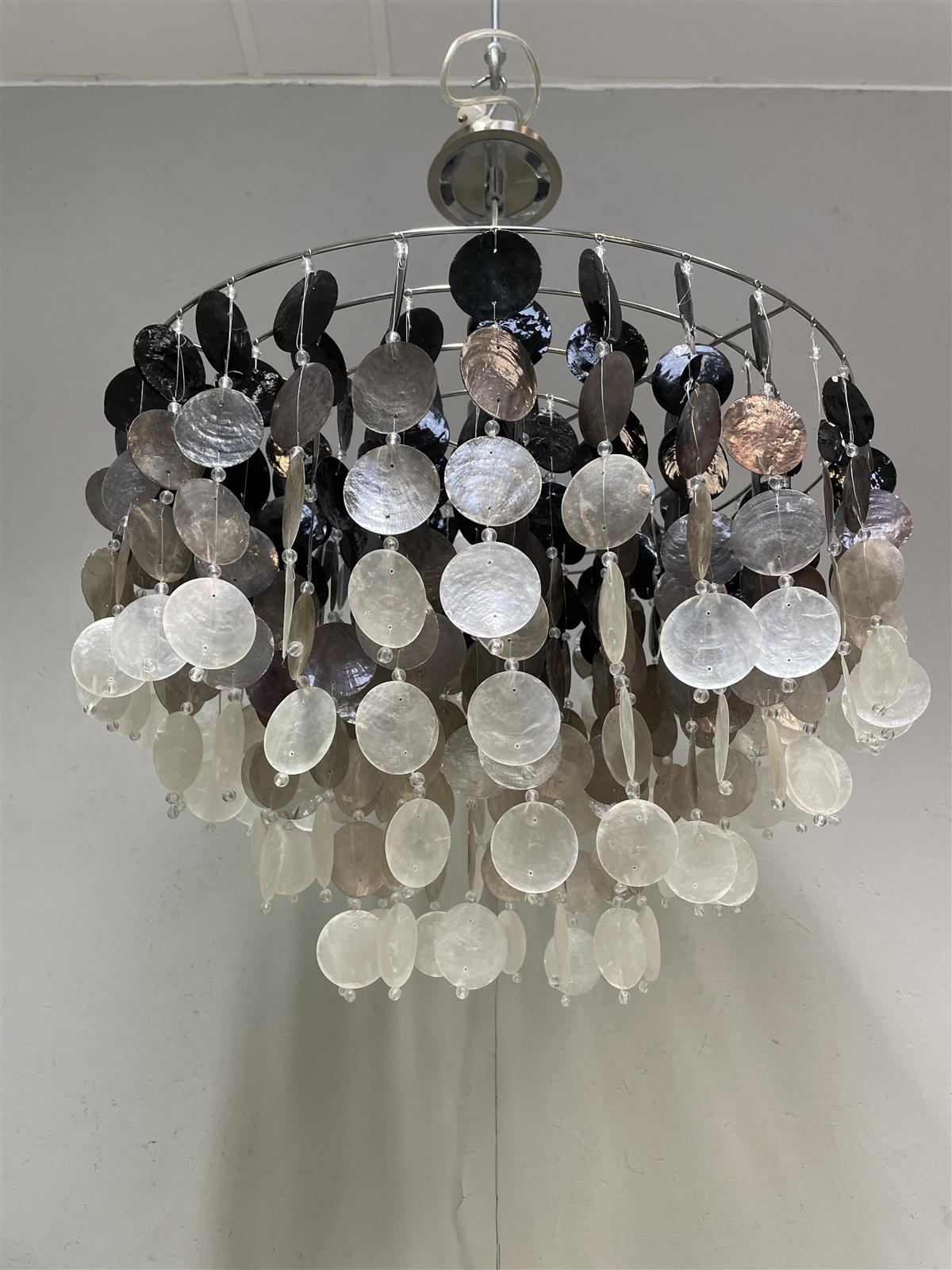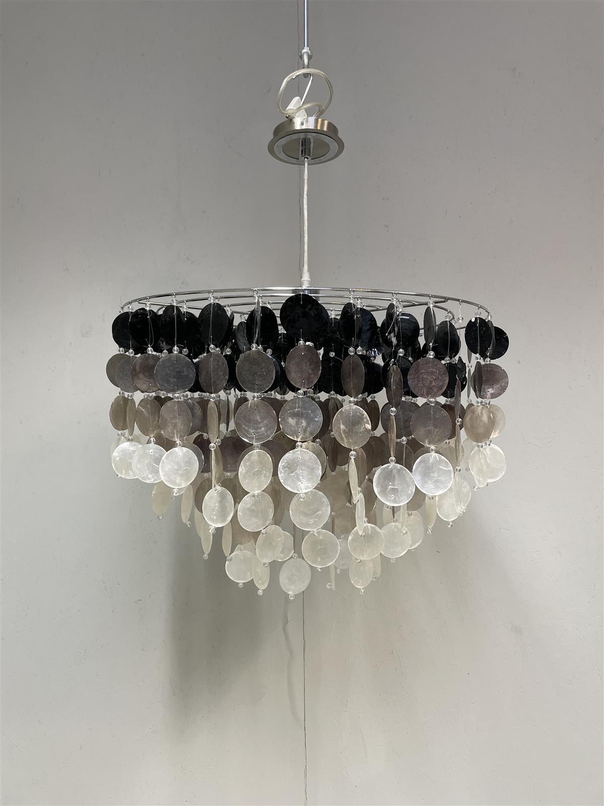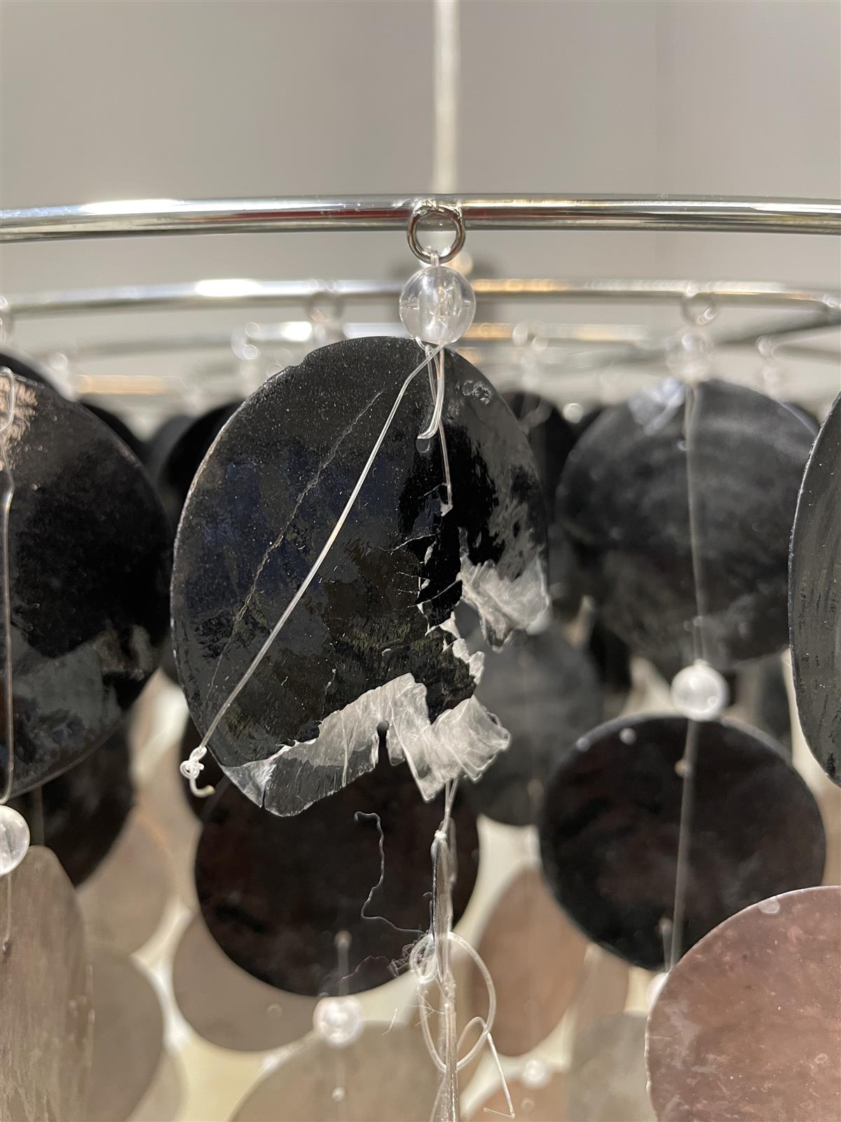 Brilliant Kattovalaisin, jossa on useita kerroksia pyöreitä ”simpukankuori” koristeita. Valmistaja on Brilliant, ja valaisin käyttää E27-kantaista lamppua, maksimiteho 60W.