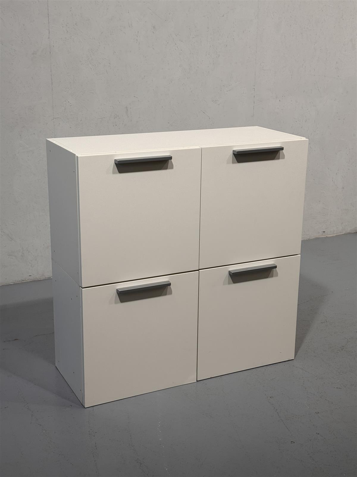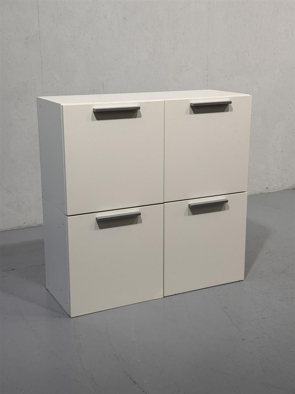 Moderni Calligaris kaappi joka soveltuu seinälle asennettavaksi tai tason päälle, jossa on neljä ovea ja metalliset vetimet. Valmistettu Italiassa, tämä kaappi tarjoaa käytännöllistä säilytystilaa ja sopii monenlaisiin sisustuksiin. Valkoinen väri korostaa sen minimalistista muotoilua ja tekee siitä helpon yhdistää muihin kalusteisiin. Sisällä seinäruuvit mukana.