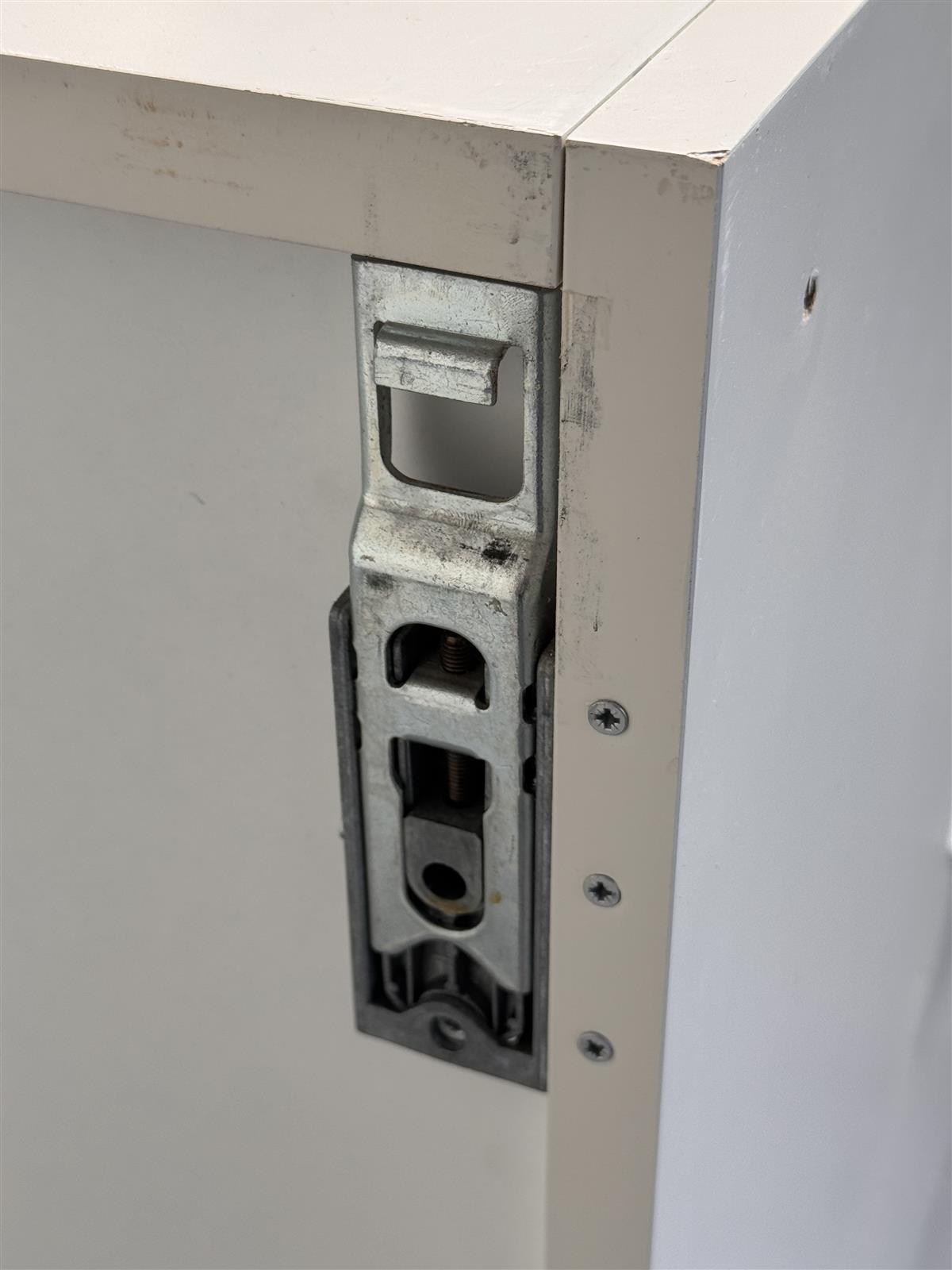 Kaapissa on havaittavissa kulumisen merkkejä, kuten pieniä naarmuja ja kulumia reunoissa. Takaseinämässä ruuvikiinnityksistä halkeamaa levyssä, joka ei näy päälle.