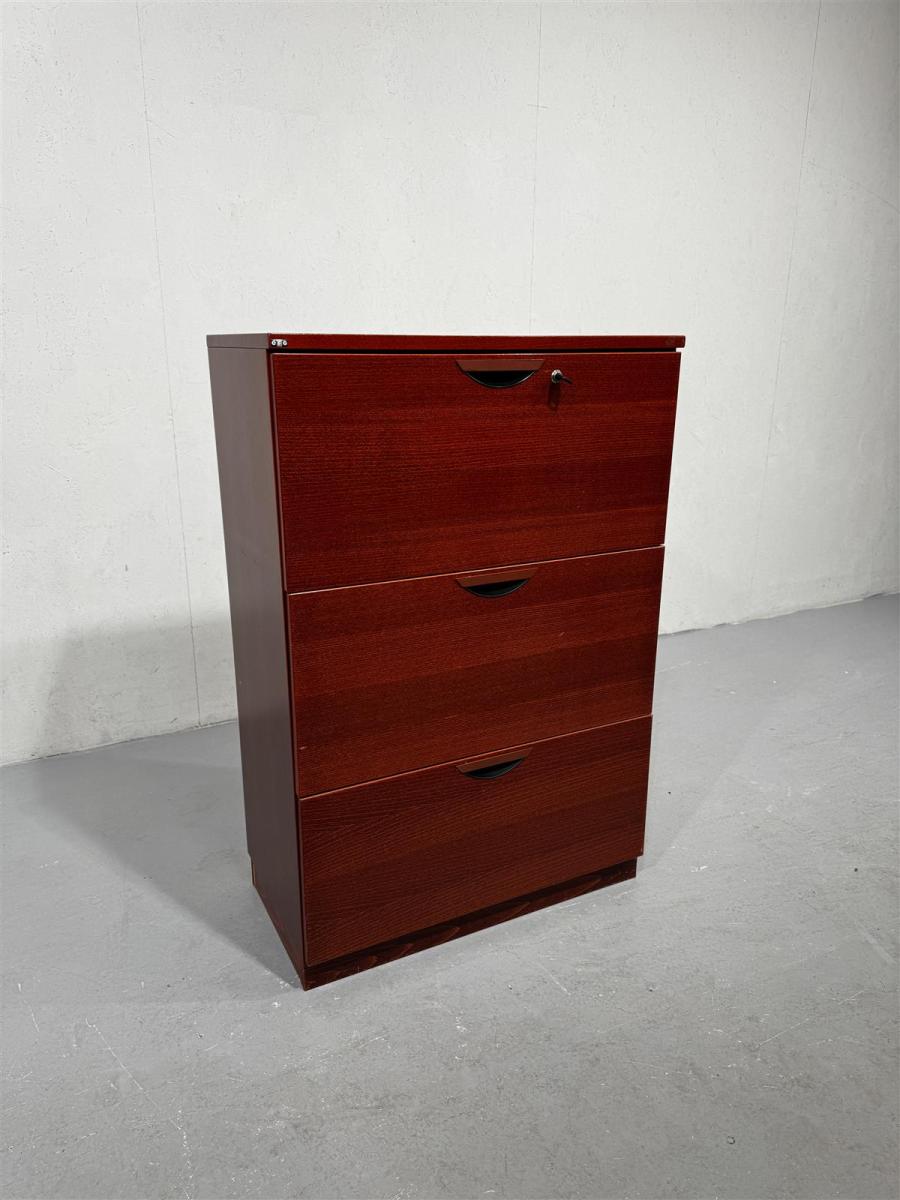 Laadukas toimiston arkistolipasto, jossa on kolme vetolaatikkoa ja lukittava yläosa. Vetolaatikot avoimia, 70cm leveitä, joihin paperitaskut saa roikkumaan- mukana ei paperitaskuja. Valmistaja on EFG, ja siinä on tyylikäs puna-ruskea viimeistely.