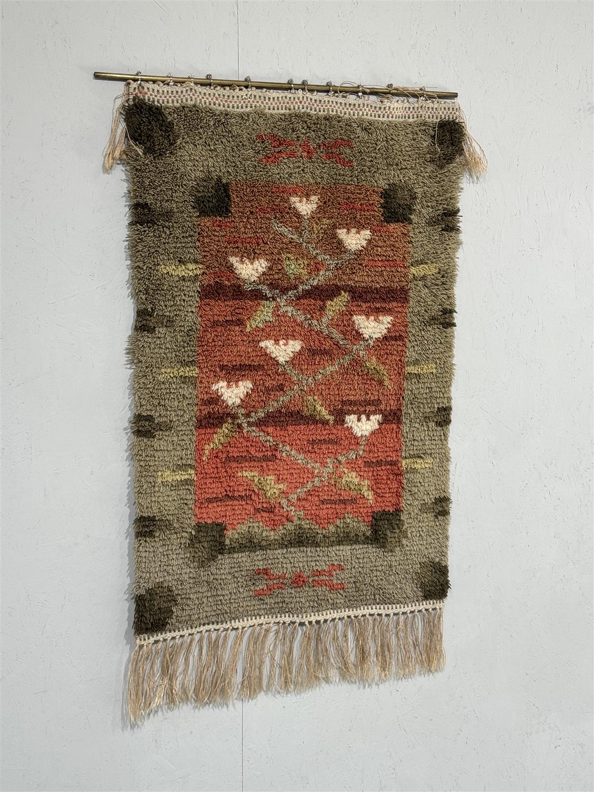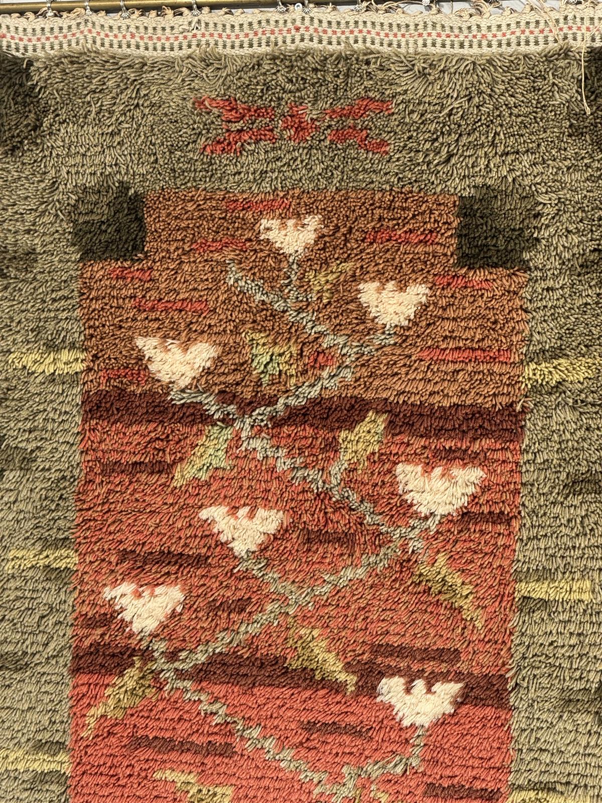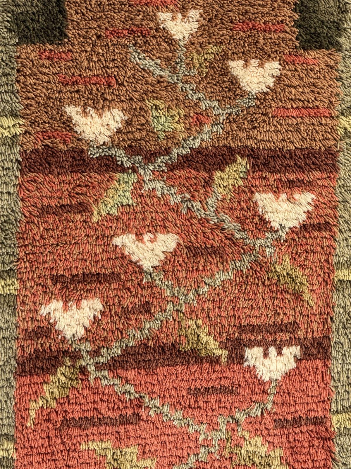 Elämänlanka Ryijy, suunniteltu todennäköisesti 1930-luvulla A.W. Raition toimesta, esittää kauniita kukkakuvioita.