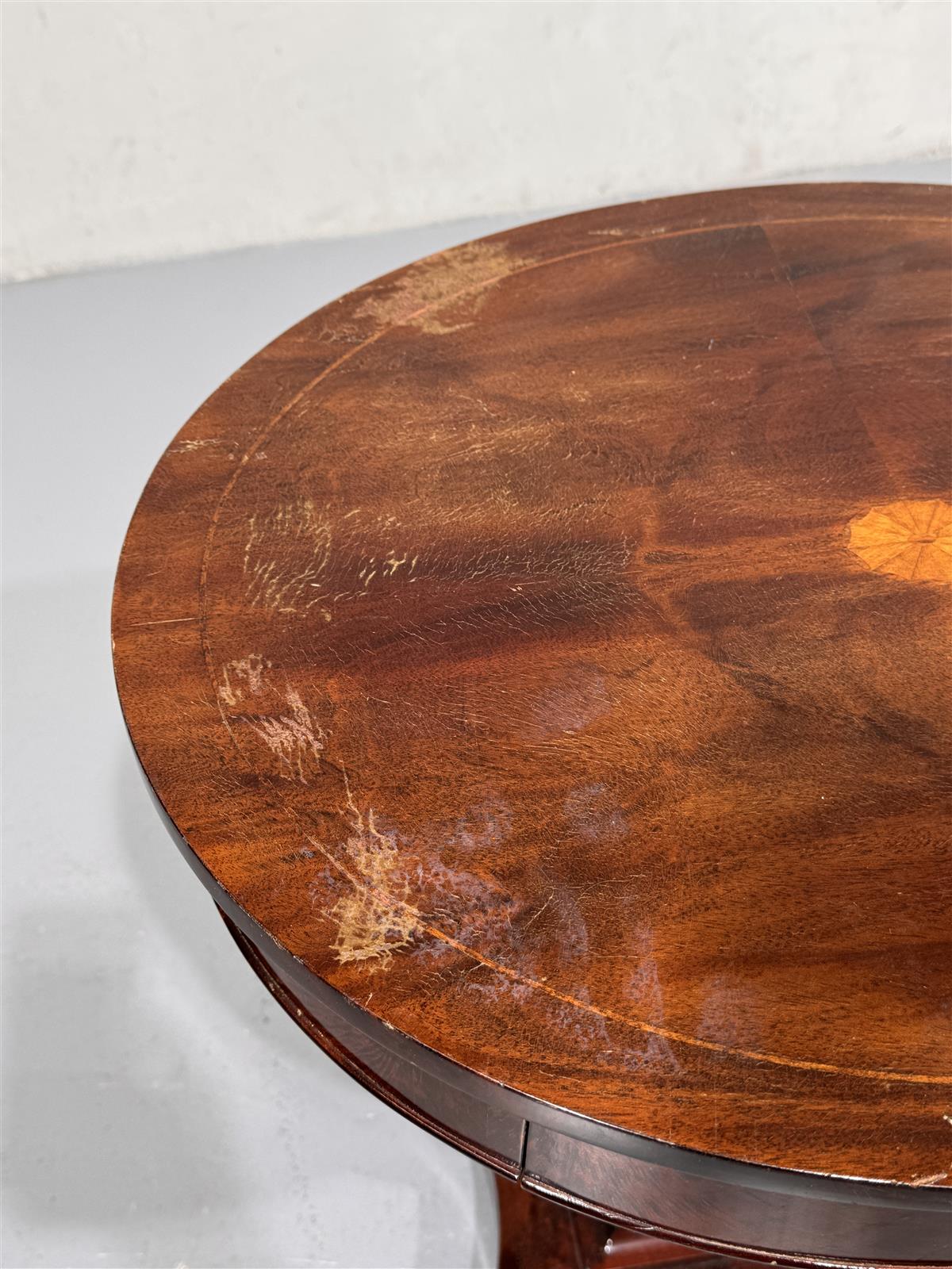 Empire-tyyli on peräisin 1800-luvun alusta ja se tunnetaan symmetriasta ja antiikin vaikutteista. Tämä pöytä edustaa tyylille ominaista hienostunutta muotoilua ja koristeellisuutta.