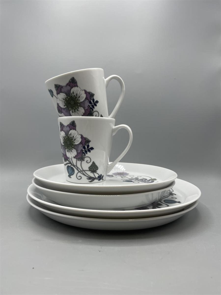 2kpl lautanen halkaisija 26cm. 2kpl lautanen, halkaisija 22cm. 2kpl muki, suuaukon halkaisija 9cm, korkeus 10cm.