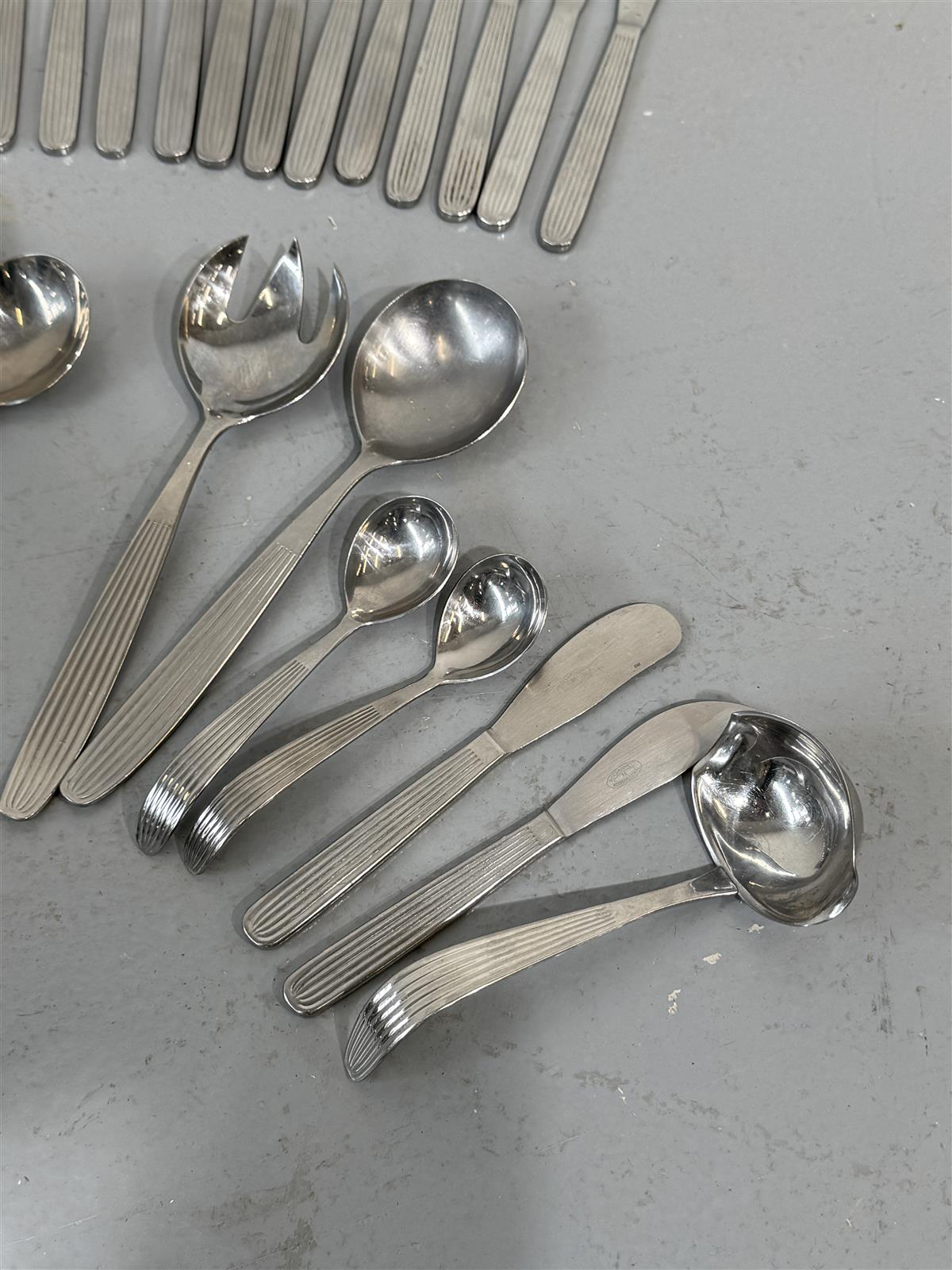 Hackman Scandia ruokailuvälinesetti, joka sisältää haarukoita, veitsiä ja lusikoita ja ottimia yhteensä 67 osaa. Setti on valmistettu metallista ja siinä on yksinkertainen muotoilu.