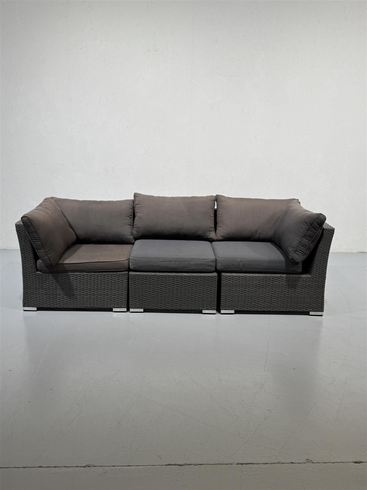 Tyylikäs Hillestorp parvekesohva, joka on valmistettu kestävästä polyrottingista. Tämä sohva on suunniteltu ulkokäyttöön ja tarjoaa mukavan istumapaikan useammalle henkilölle. Sen harmaa väri sopii monenlaiseen ympäristöön ja tuo modernia ilmettä terassille tai puutarhaan. Kulmamoduulin leveys 80cm, keskimoduulin leveys 63cm, istuinkorkeus ilman patjaa 30cm.