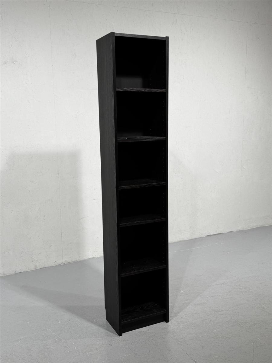 Tyylikäs Ikea Billy hyllykkö, jossa on useita siirreltäviä hyllytasoja. Musta väri antaa sille ajattoman ja monikäyttöisen ilmeen, joka sopii moneen tilaan.