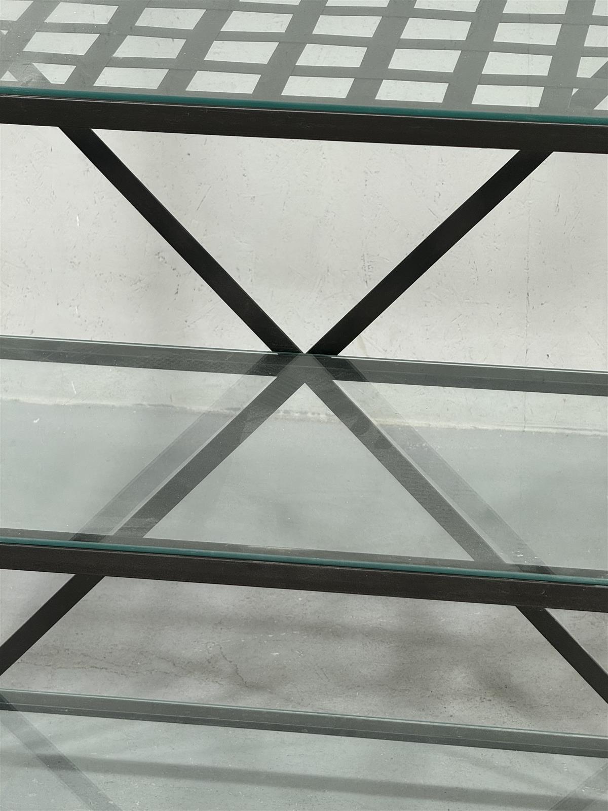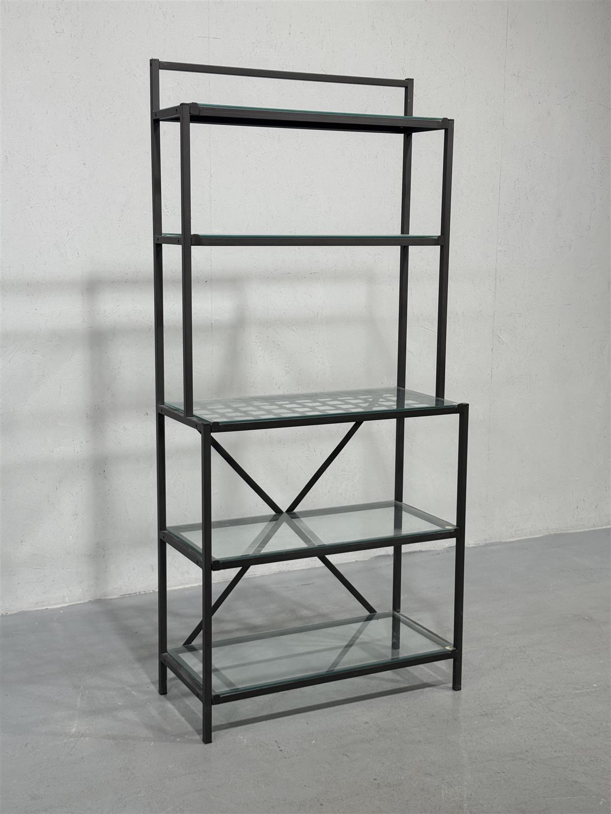 Ikea Granås metallirunkoinen hyllykkö, jossa on lasihyllyt. Sopii hyvin monenlaiseen sisustukseen ja tarjoaa runsaasti säilytystilaa.