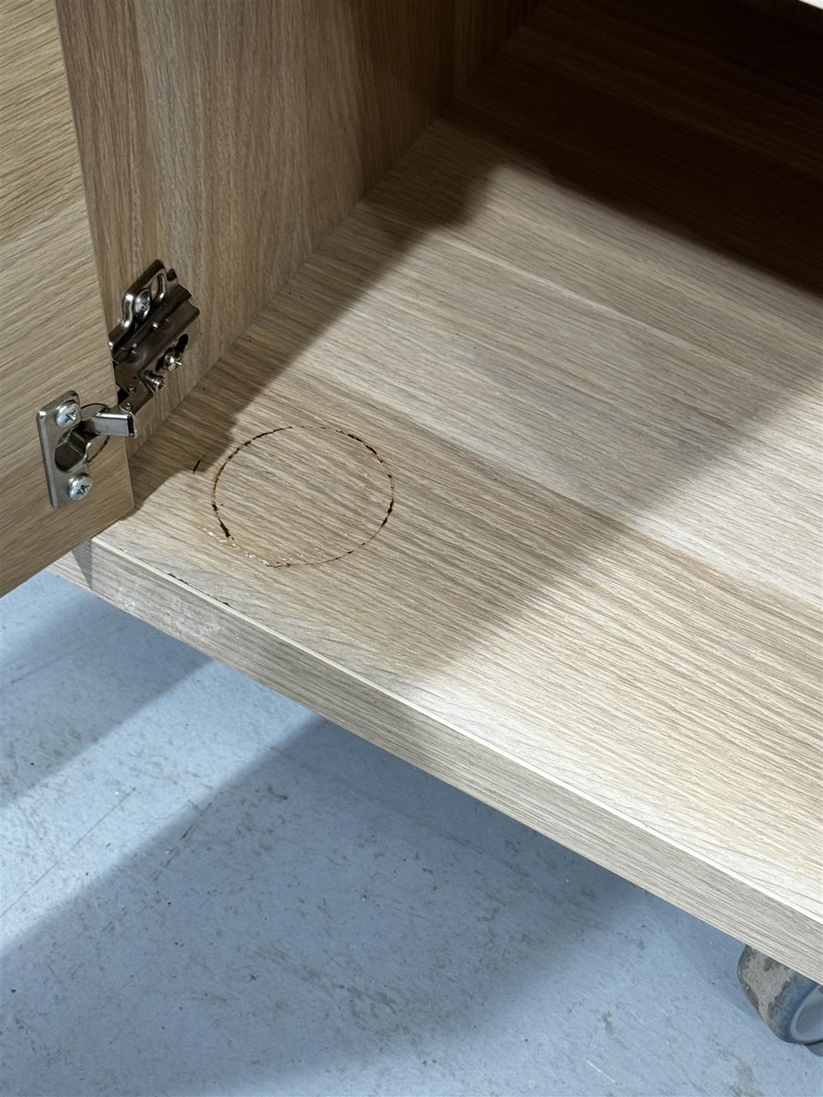 Hyllykössä on havaittavissa pieniä käytön jälkiä, mutta se on muuten hyvässä kunnossa.