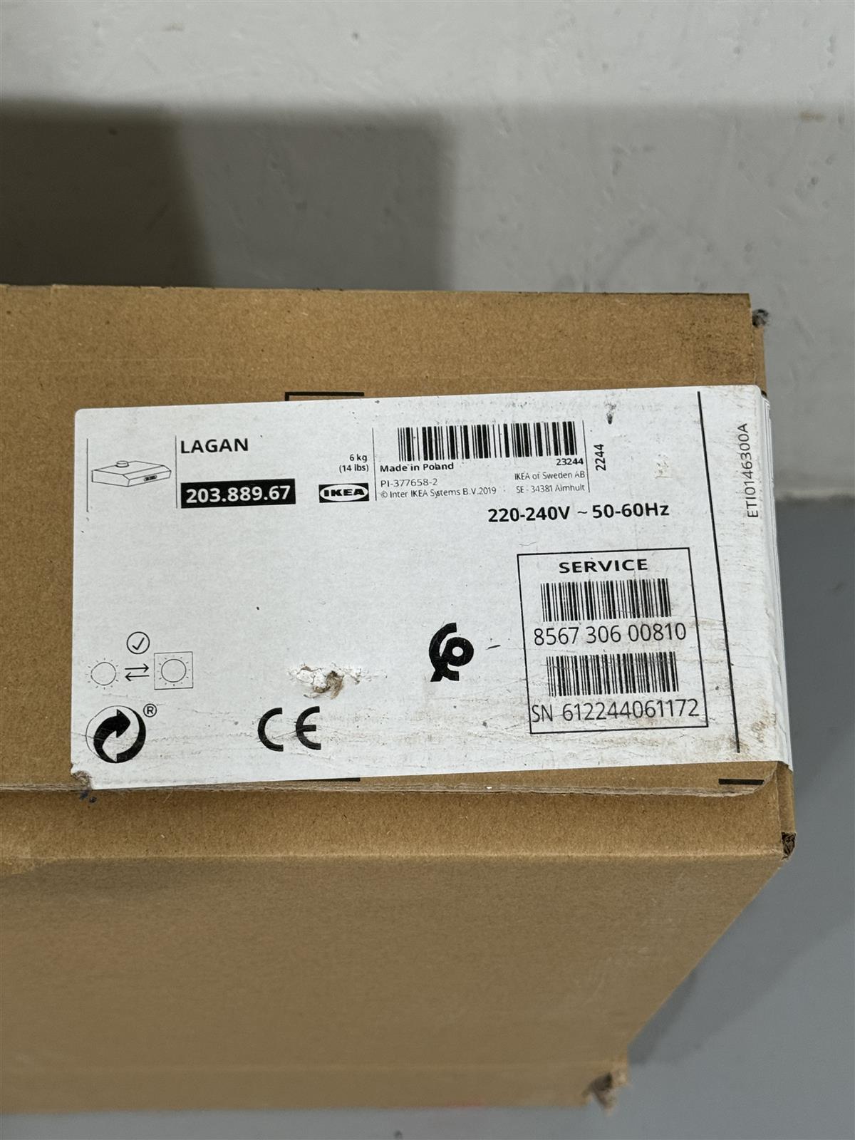 Ikea Lagan liesituuletin on kompakti ja tehokas ratkaisu keittiön ilmanvaihtoon. Se on suunniteltu toimimaan 220-240V jännitteellä ja 50-60Hz taajuudella, mikä tekee siitä yhteensopivan useimpien kotitalouksien sähköjärjestelmien kanssa. Tämä liesituuletin yhä paketissaan, käyttämättä.