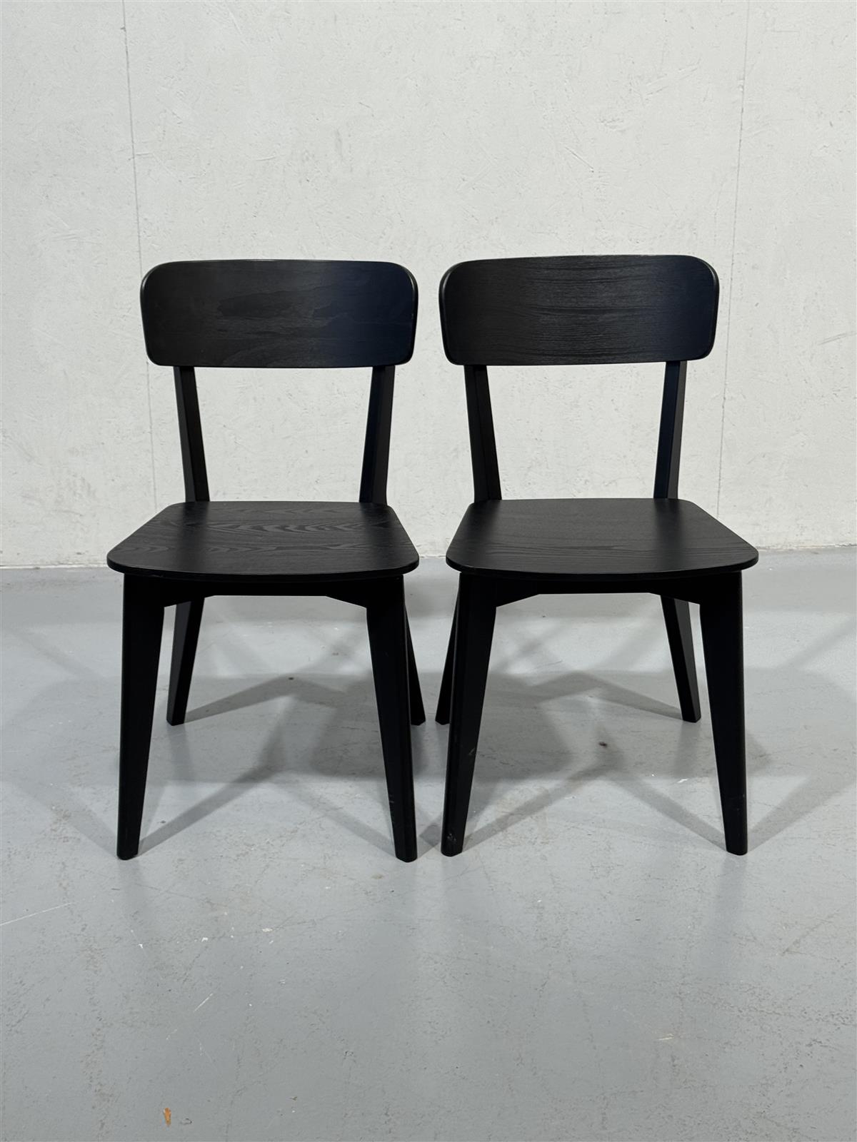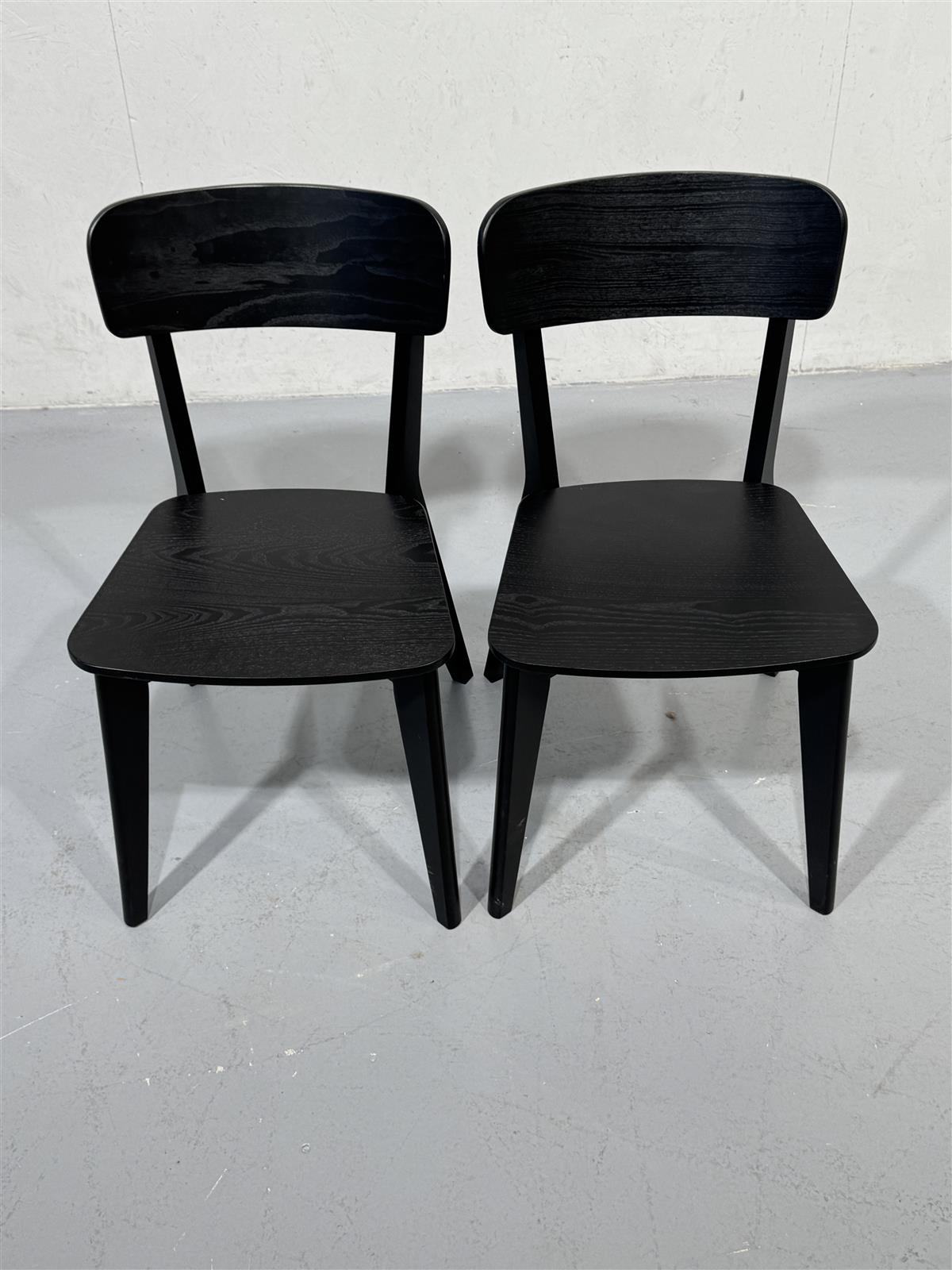 Kaksi mustaa Ikea Lisabo tuolia, joissa on yksinkertainen ja moderni muotoilu. Tuolit ovat tukevia ja niissä on suorat jalat.