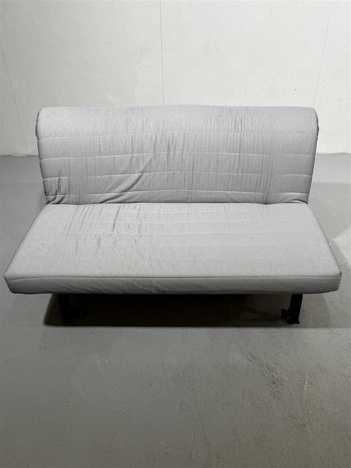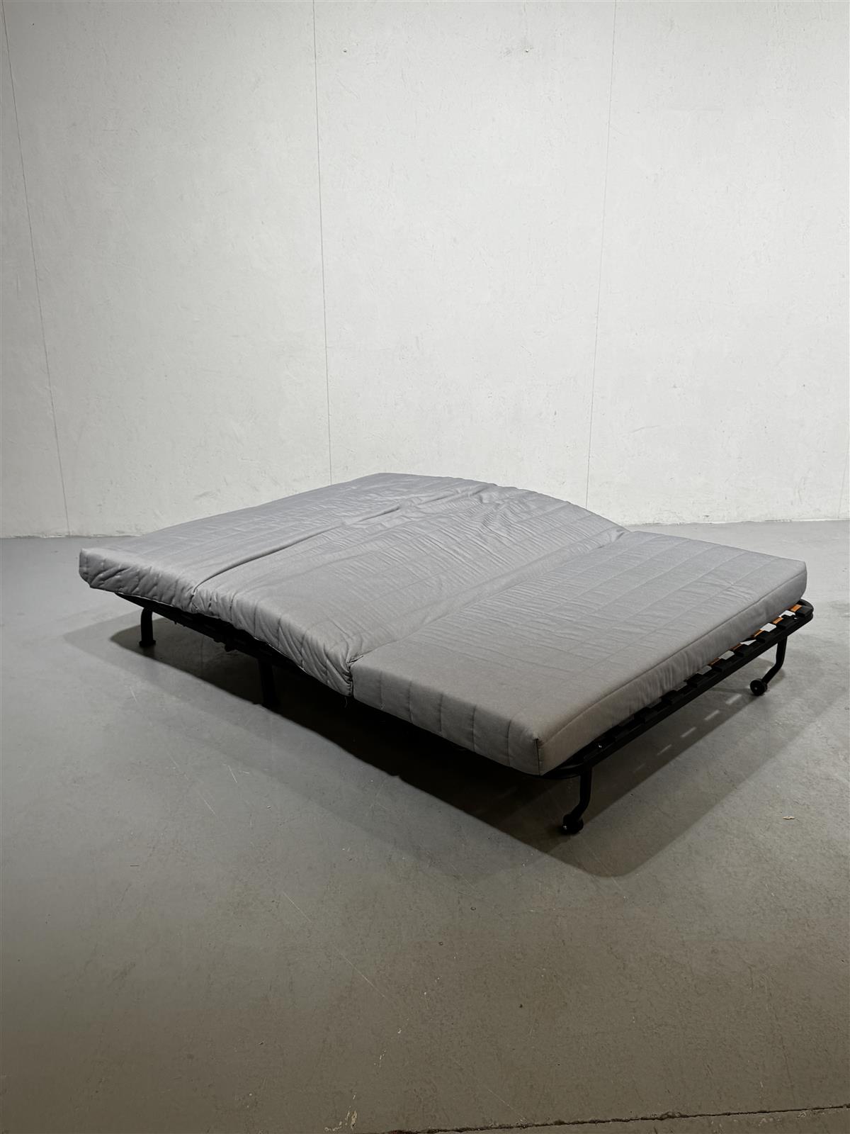 Kätevä Ikea Lycksele vuodesohva, joka on helppo muuntaa sängyksi. Leveys 140 cm ja sänkynä 140×190 cm. Harmaa päällinen patjassa ja mustat metallijalat. Päällä valkoinen verhoilukangas, jossa muutamia tahroja – suositellaan pesua alkuun.