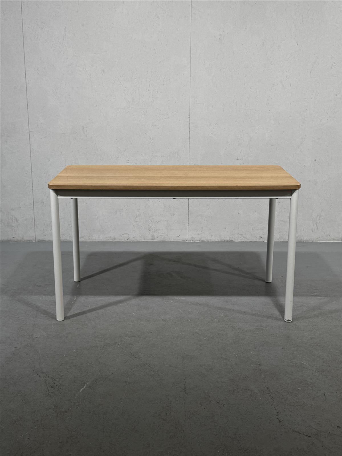 Ikea Tommaryd malliston ruokapöytä, jossa on puunvärinen kansi ja valkoiset metalliset jalat. Pöydän koko on 70×130 cm.