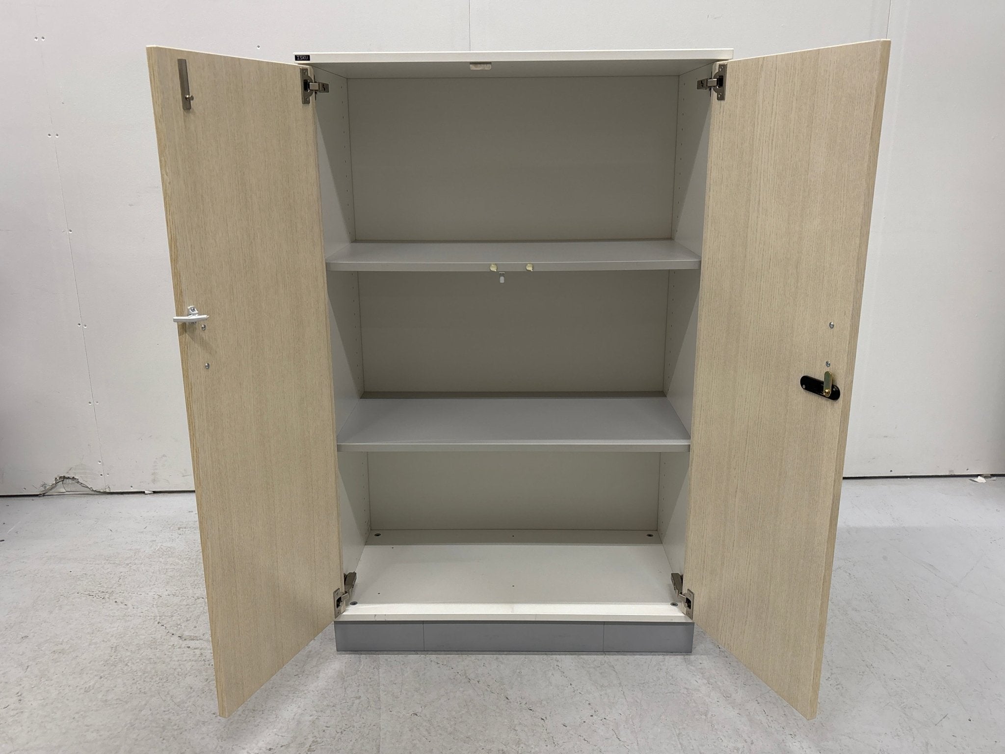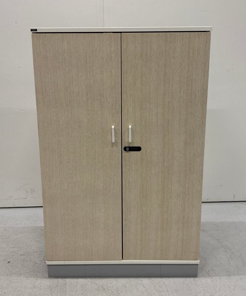 laadukas Iskun ovikaappi kolmella hyllyvälillä. Lukitusmenetelmä koodilukolla, jonka voi resetoida lukon takaosasta. Nykyinen koodi kirjattuna kaappiin.