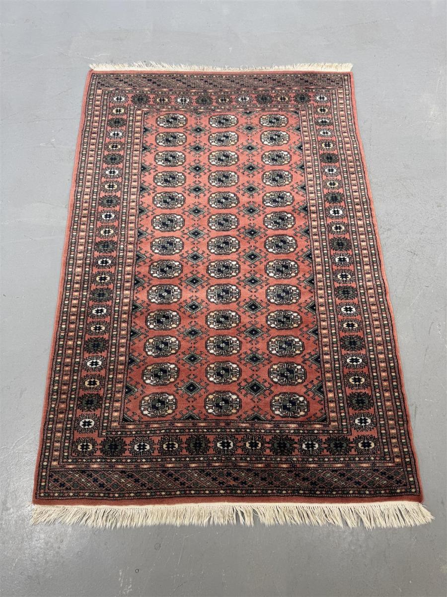 Kaunis itämainen, käsin solmittu punapohjainen matto. 126cm x 187cm