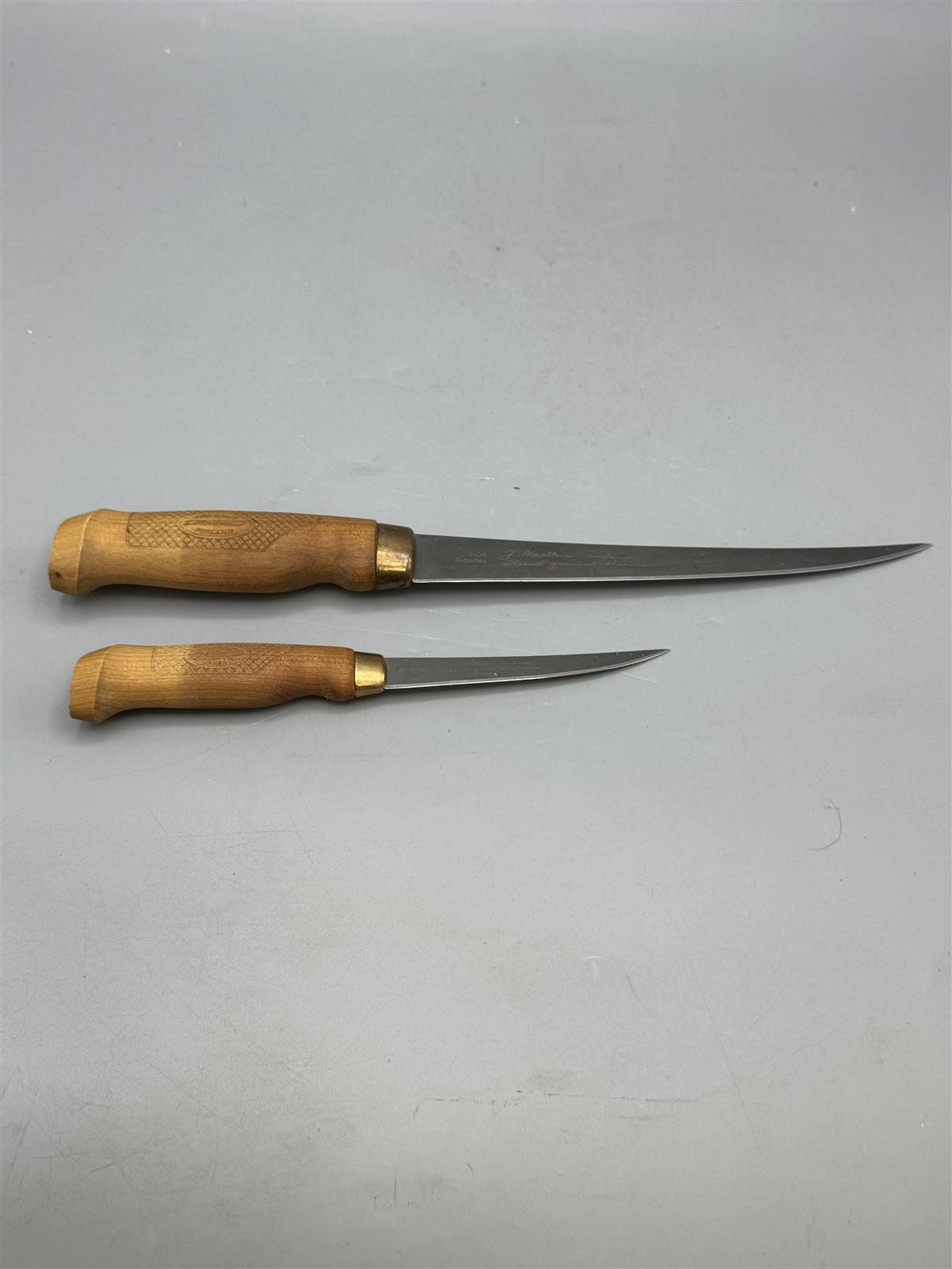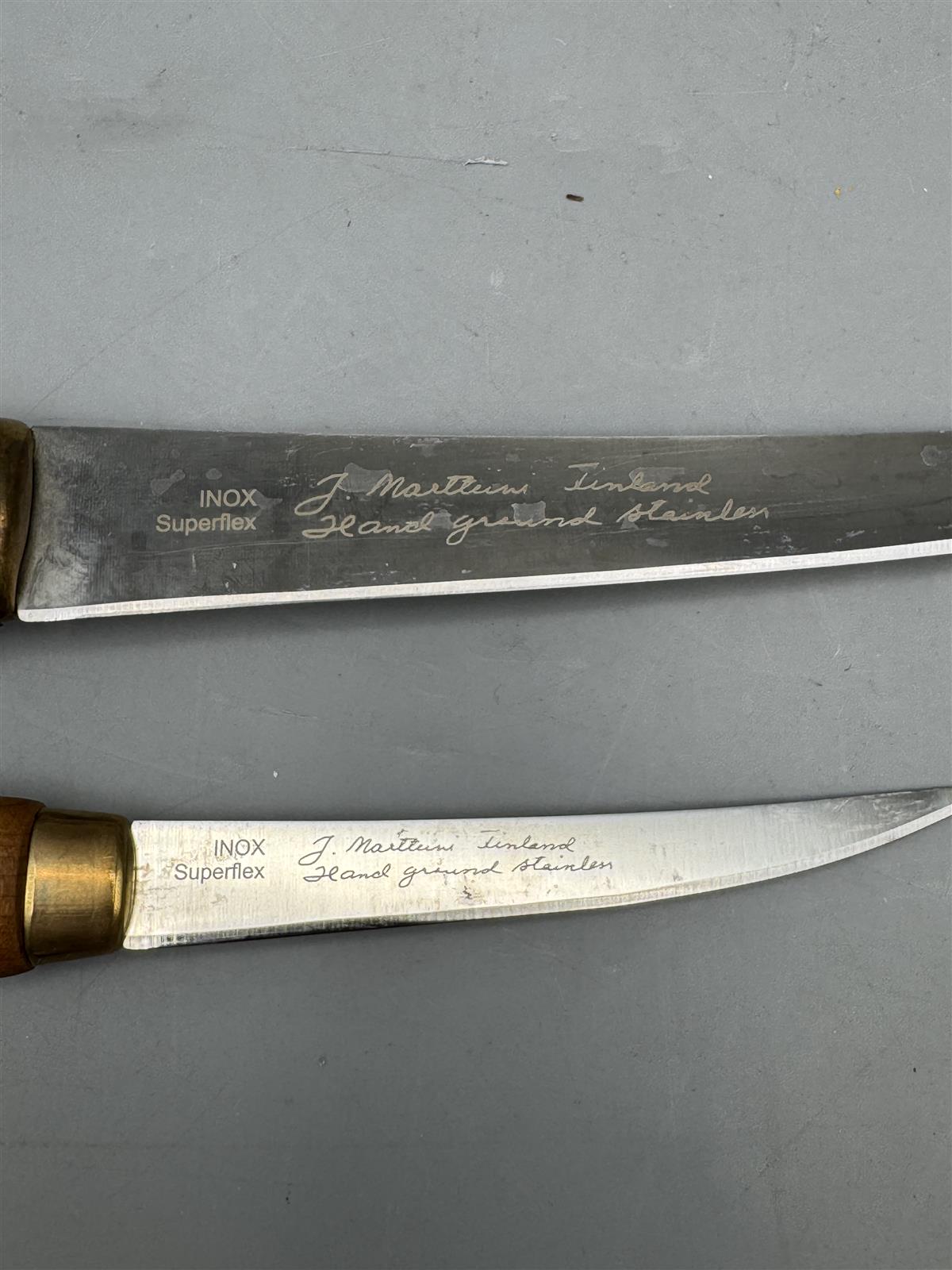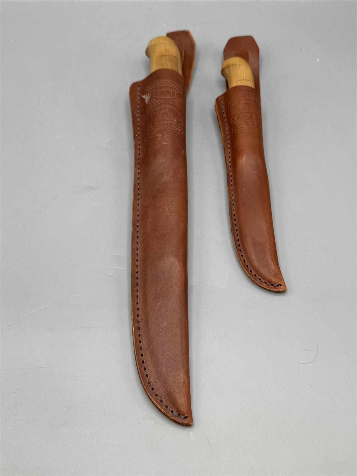 J Marttiini Finland fileeraus puukko iso ja pieni nahkatupessa.