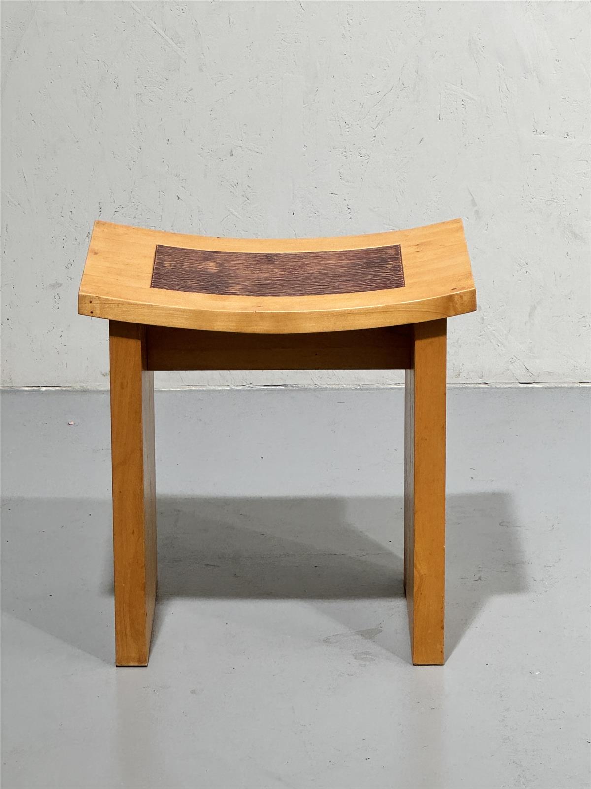 Tyylikäs täyspuinen penkki, jossa on kaareva istuinosa ja ruskea pintakoriste istuimessa. Valmistaja JH Design. Penkki on yksinkertainen mutta toimiva, sopien monenlaisiin sisustuksiin.