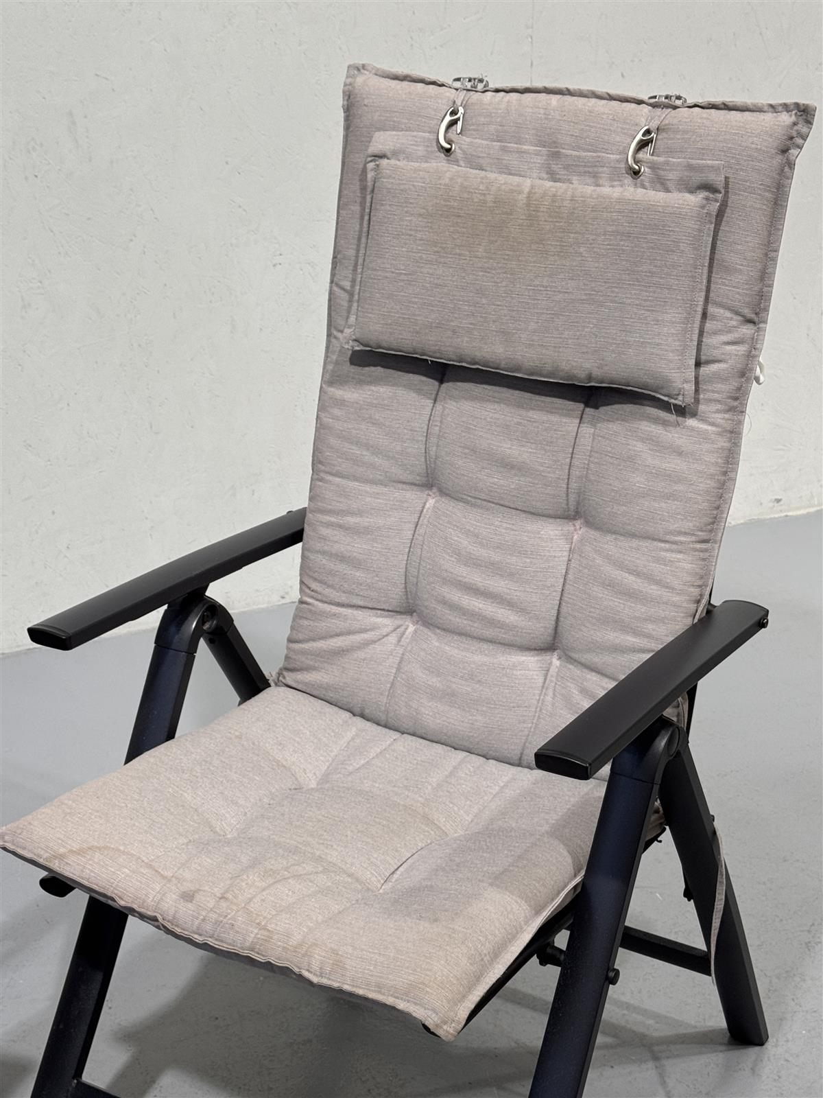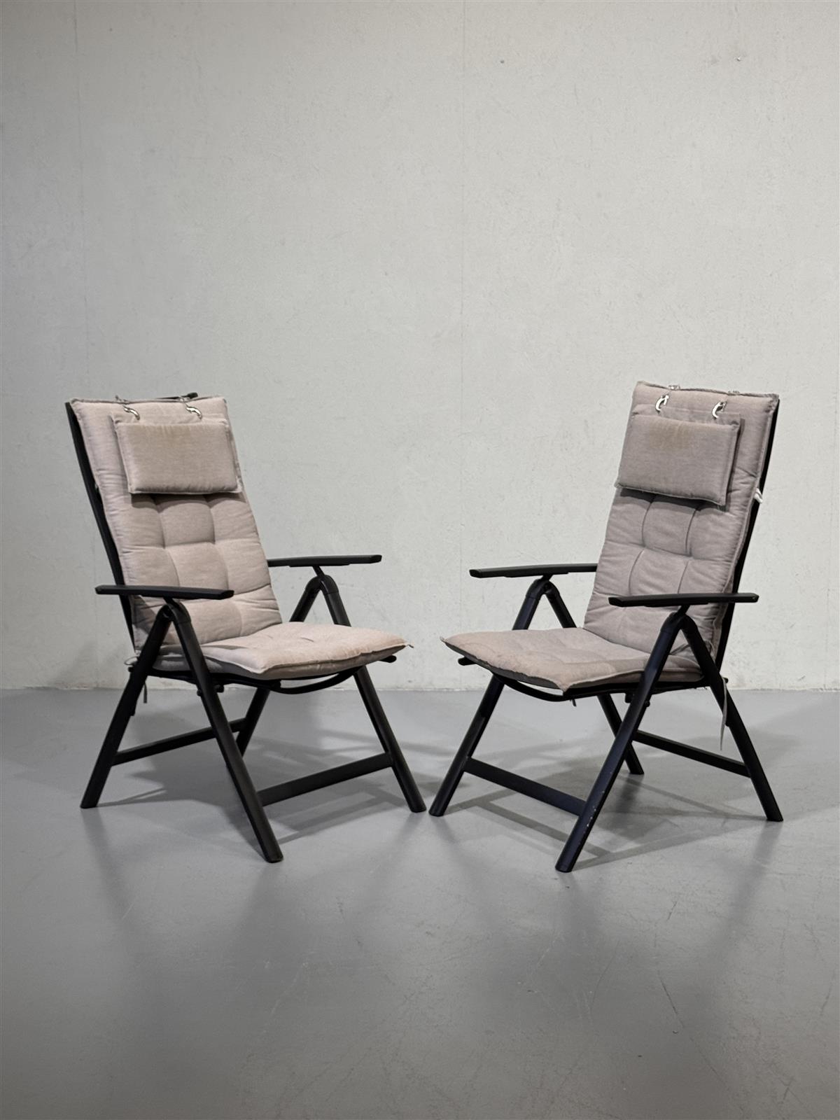 Siistit Jutlandia taittotuolit, joissa on tumma runko ja mukana harmaat pehmusteet. Tuolit ovat kevyitä ja helposti taitettavia, mikä tekee niistä käytännöllisiä pieniin tiloihin tai ulkokäyttöön. Pehmusteet lisäävät mukavuutta ja ovat irrotettavissa pesua varten, alkuun suositellaan pehmusteille pesu.