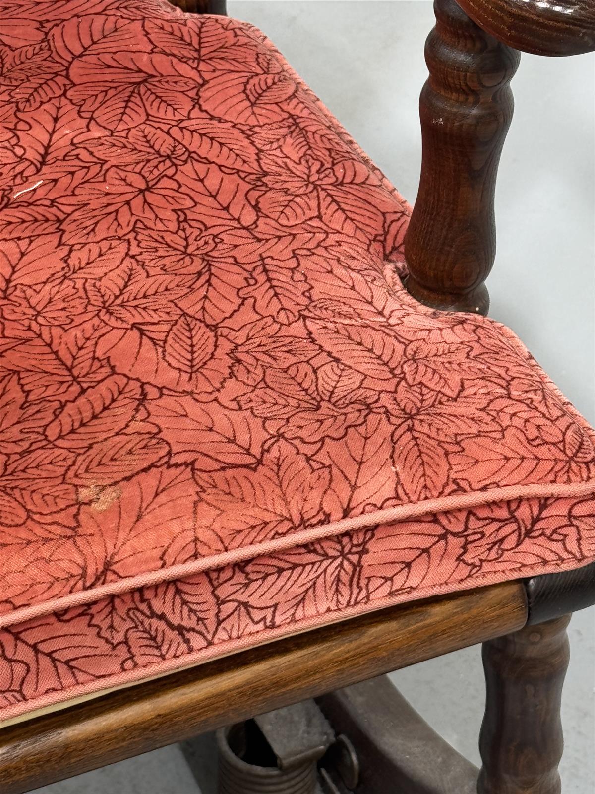 Tuoli on hyvässä kunnossa, mutta verhoilussa onlikaa ja kulumajälkiä.