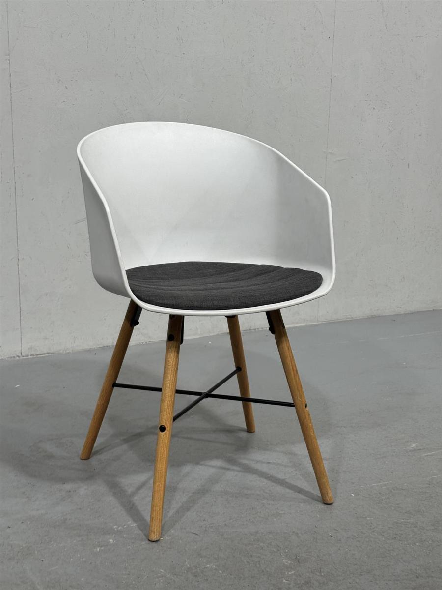 Jysk Favrbjerg tuoli. Jalat ovat puunväriset ja niissä on mustat tukirakenteet.