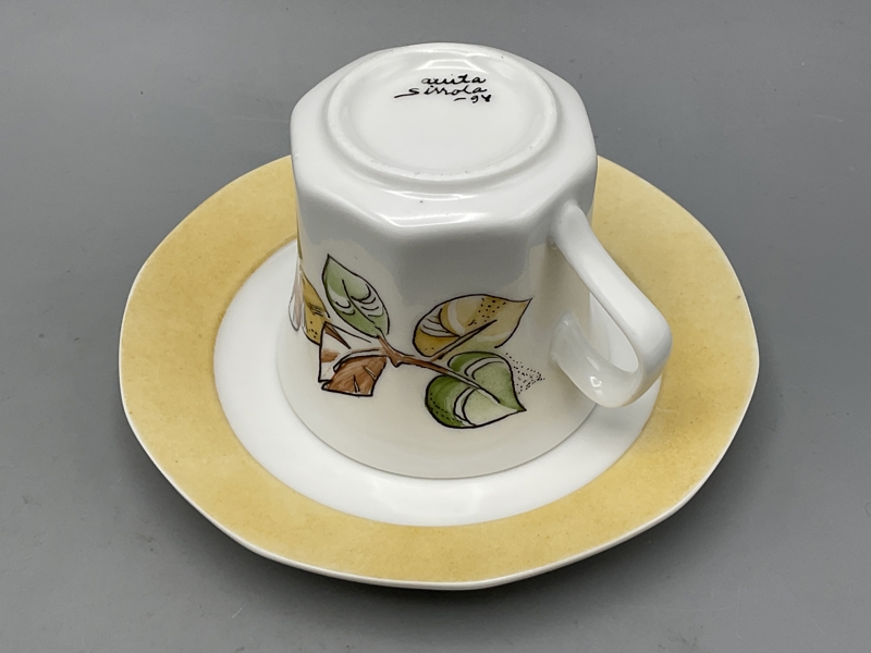 Kahvikupit käsinmaalattu koristelu 6kpl. Pohjassa sugneeraus (tuntematon)