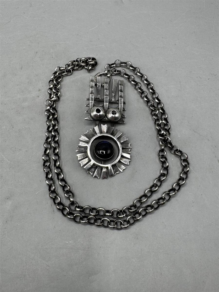 Pentti Sarpaneva design hopeinen kaunis Kaulakoru, hopeaa ja spektroliitti kivi. Kalevala koru.