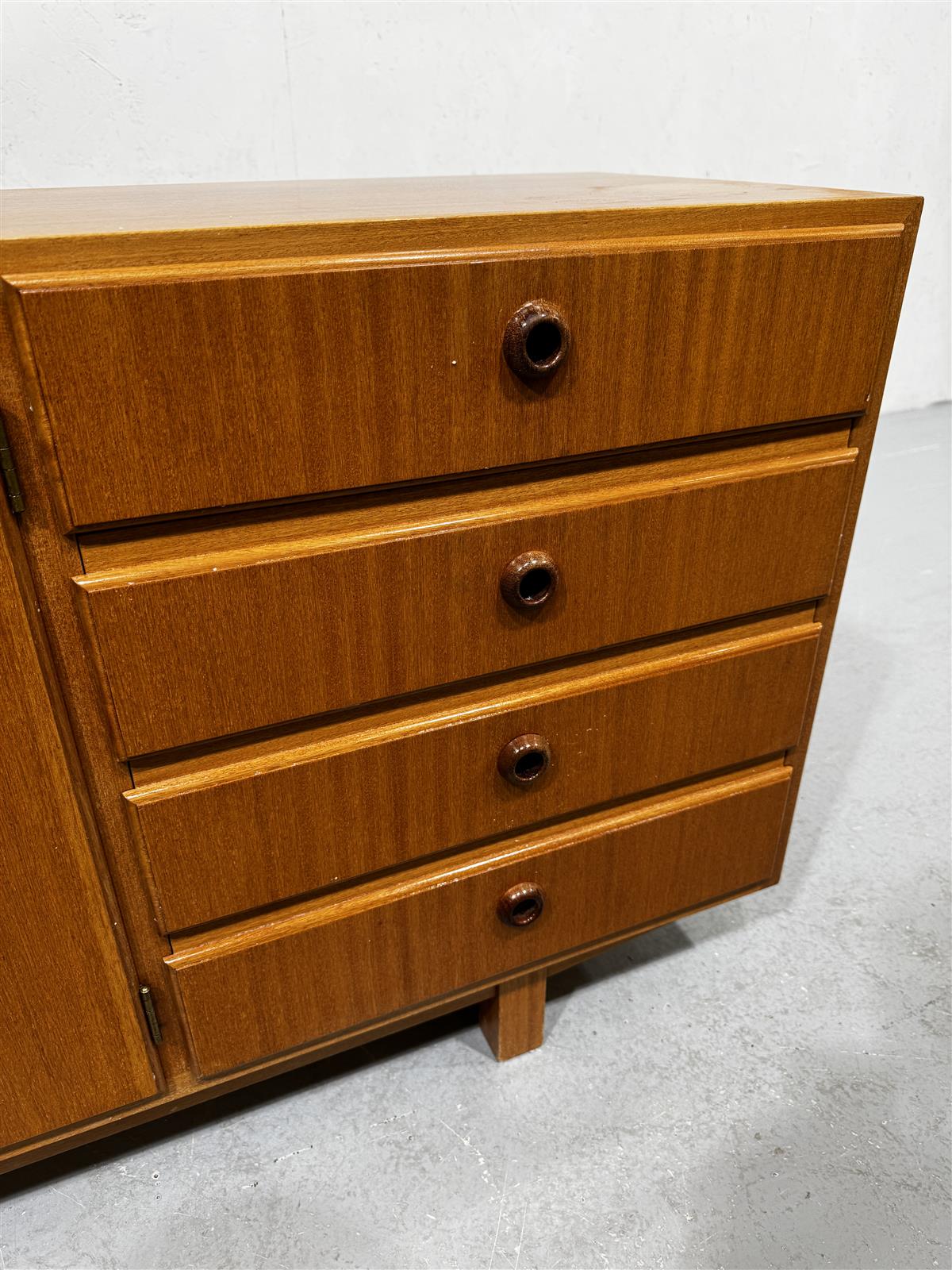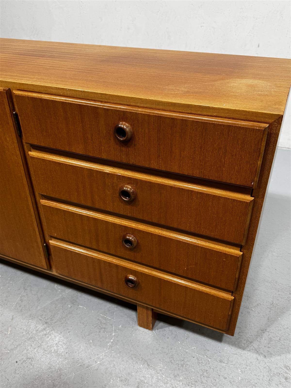 60-luvun tyyli on tunnistettavissa sen minimalistisesta ja funktionaalisesta muotoilusta, joka korostaa käytännöllisyyttä ja selkeitä linjoja. Tämä senkki edustaa aikakauden tyypillistä estetiikkaa, jossa yhdistyvät käytännöllisyys ja esteettisyys.
