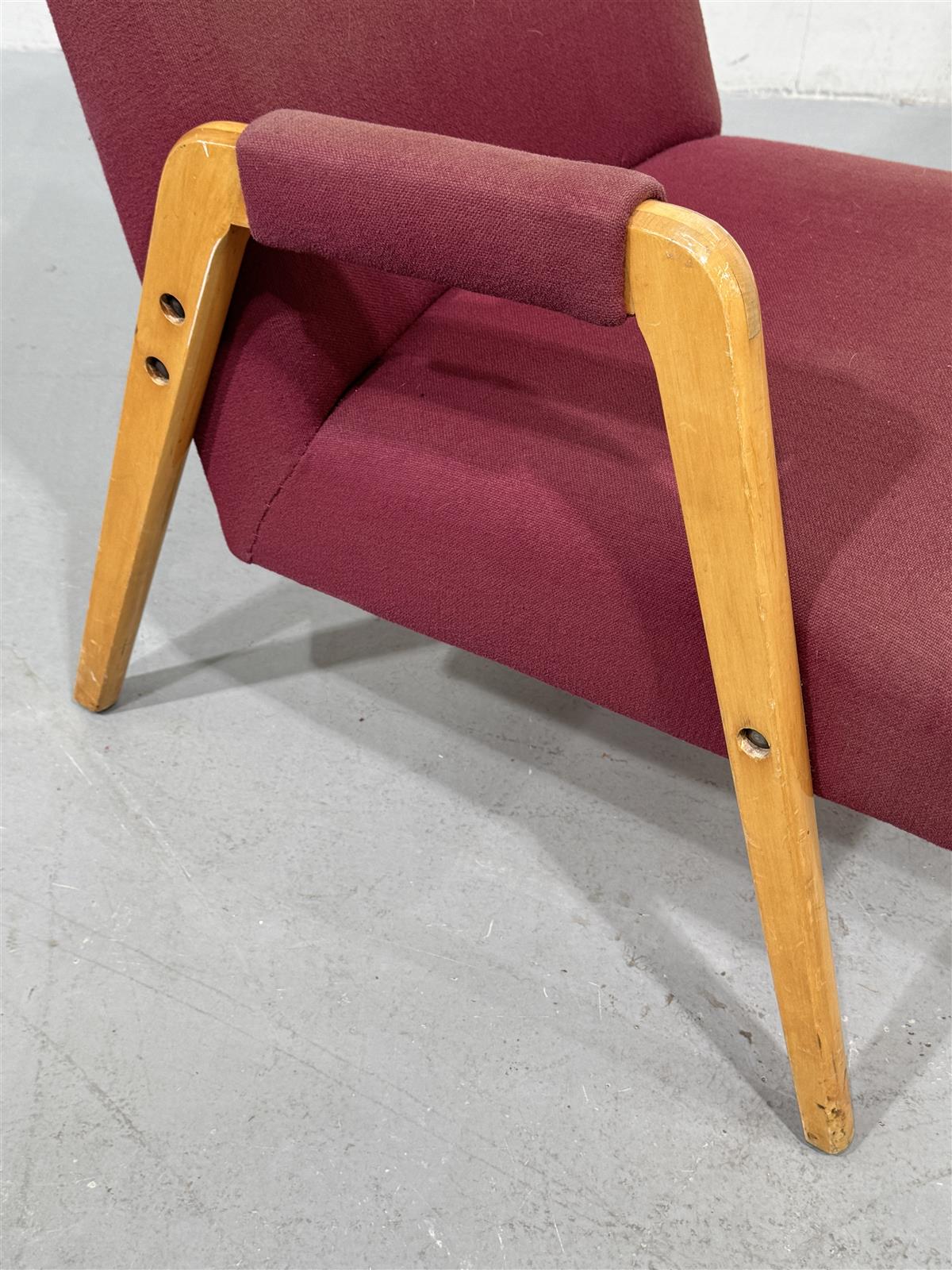 Kunto on hyvä, mutta puuosissa on havaittavissa kulumia ja käytön jälkiä. Verhoilu on ehjä, kauhtunut väriltään, hieman imuroitavaa alkuun.