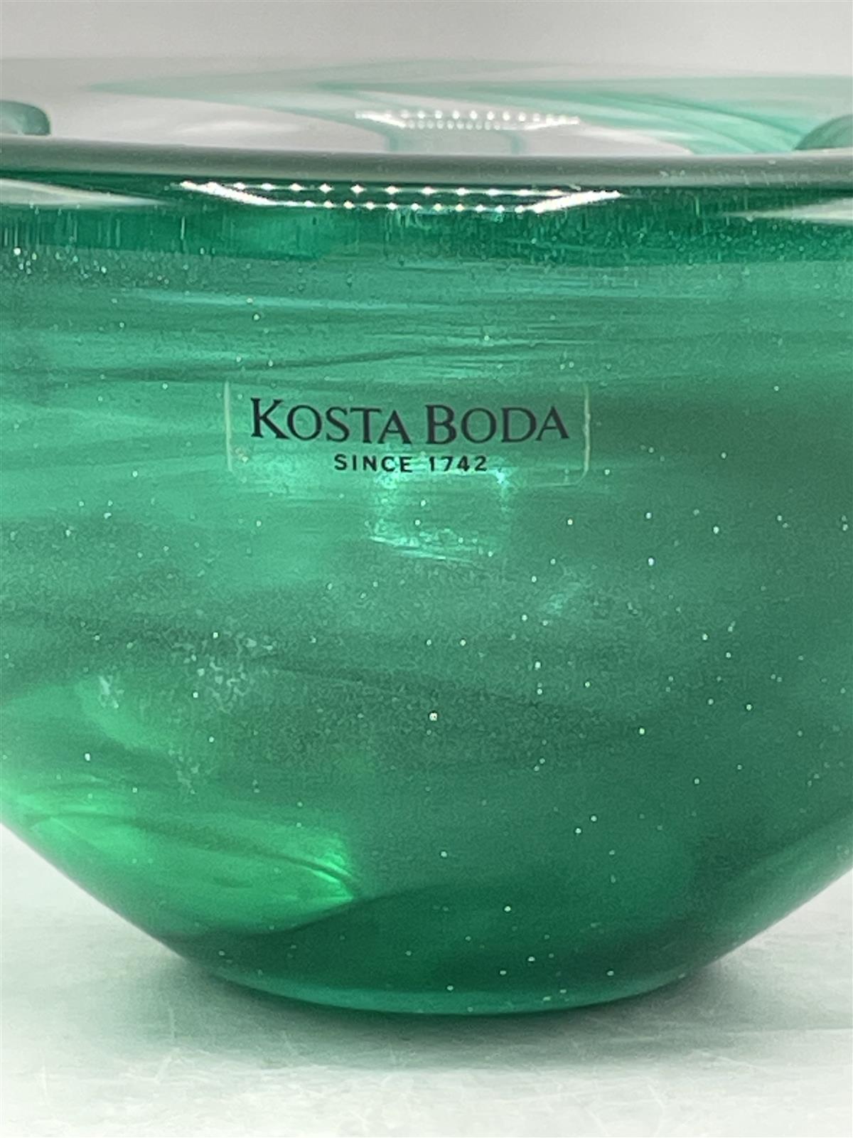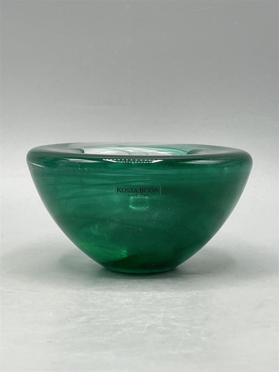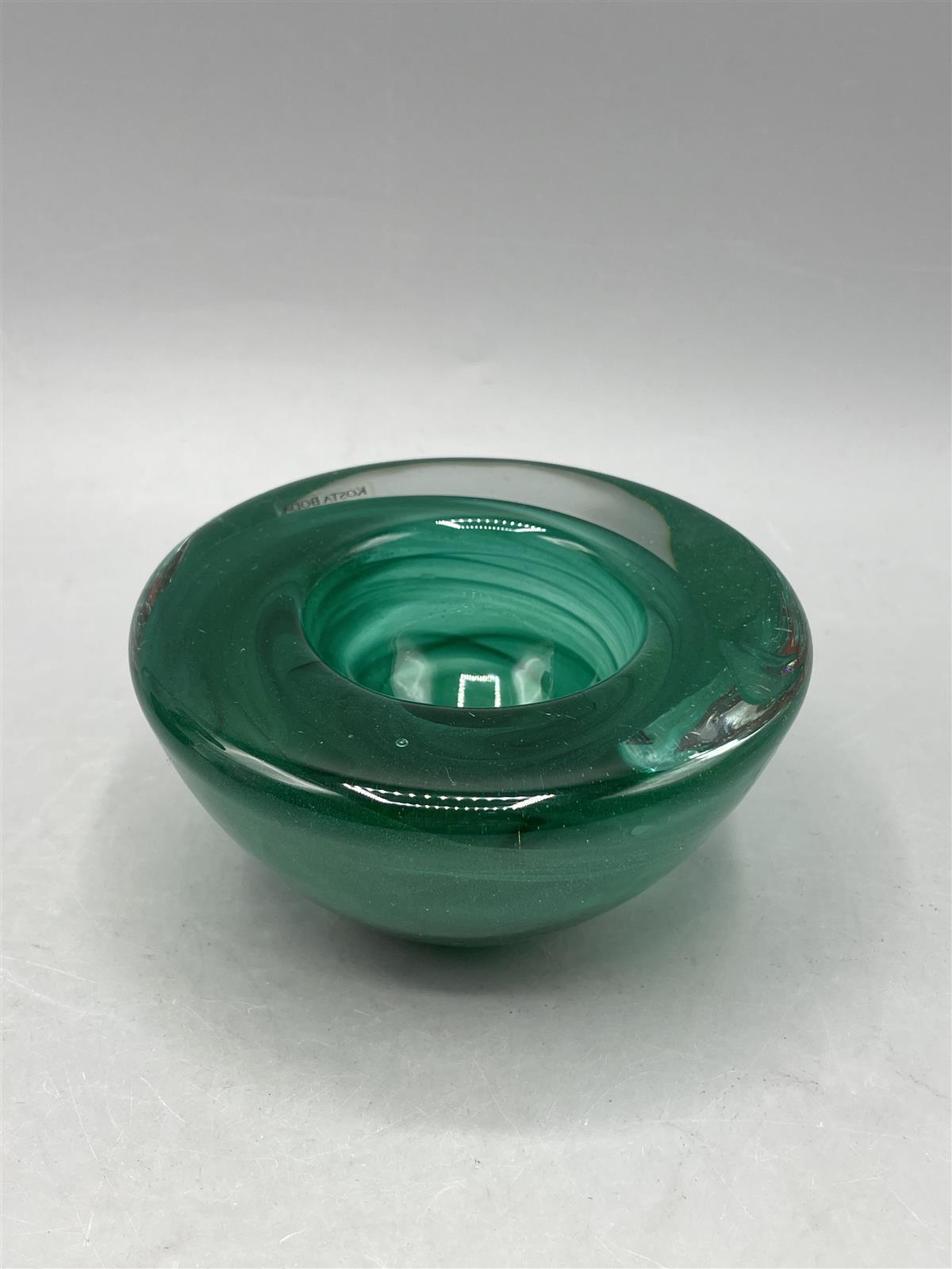 Kosta Boda Atoll kynttilälyhty, valmistettu vihreästä lasista.