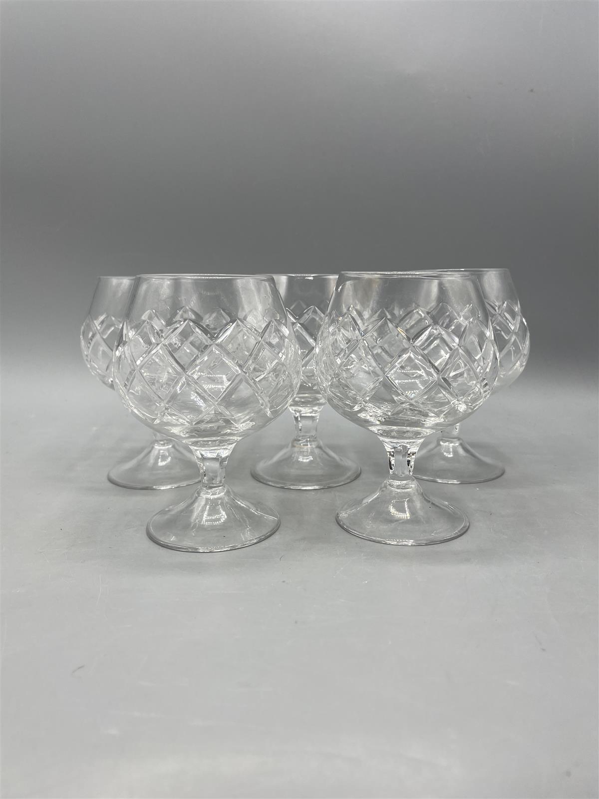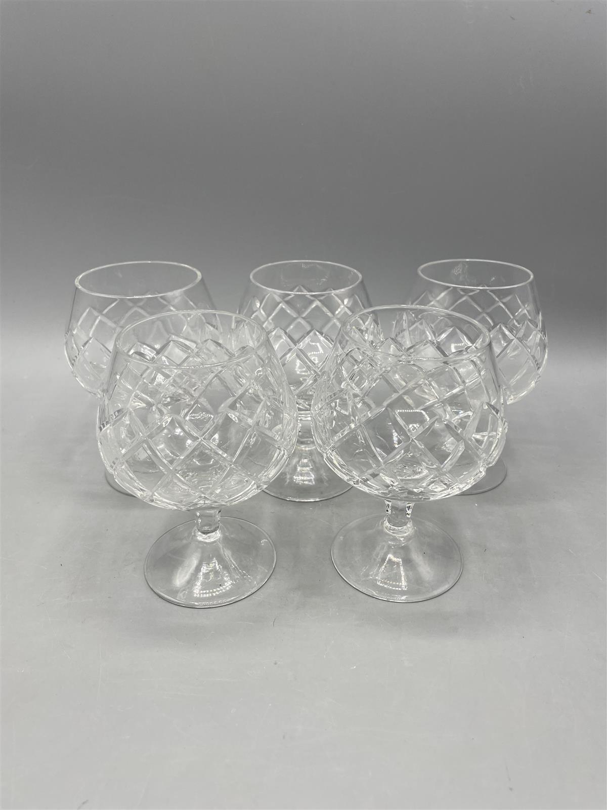 Kristalli konjakki/aromilasit 5kpl, joissa on kaunis leikkauskuviointi.