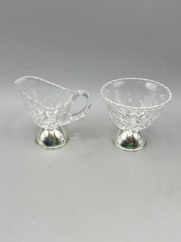 Riihimäen Lasi kristalli sokerikko ja kermakko hopeajalka Aimo Okkolin