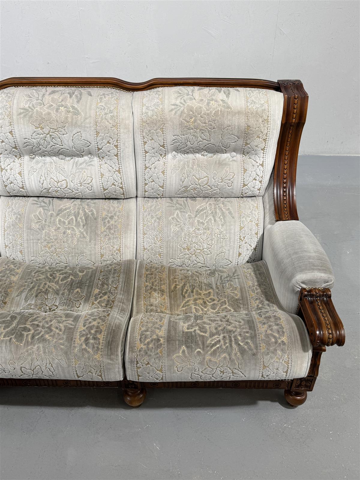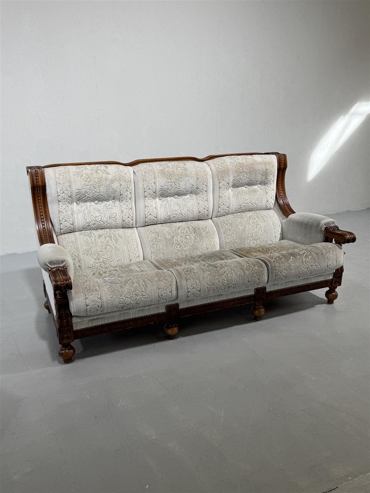 Kauniilla puurungolla varustettu rokokoo tyylin samettisohva, Kruunukaluste valmistajana. Puuosat ja verhoilut hyvässä kunnossa ja siistit.  Käytön jälkeä.