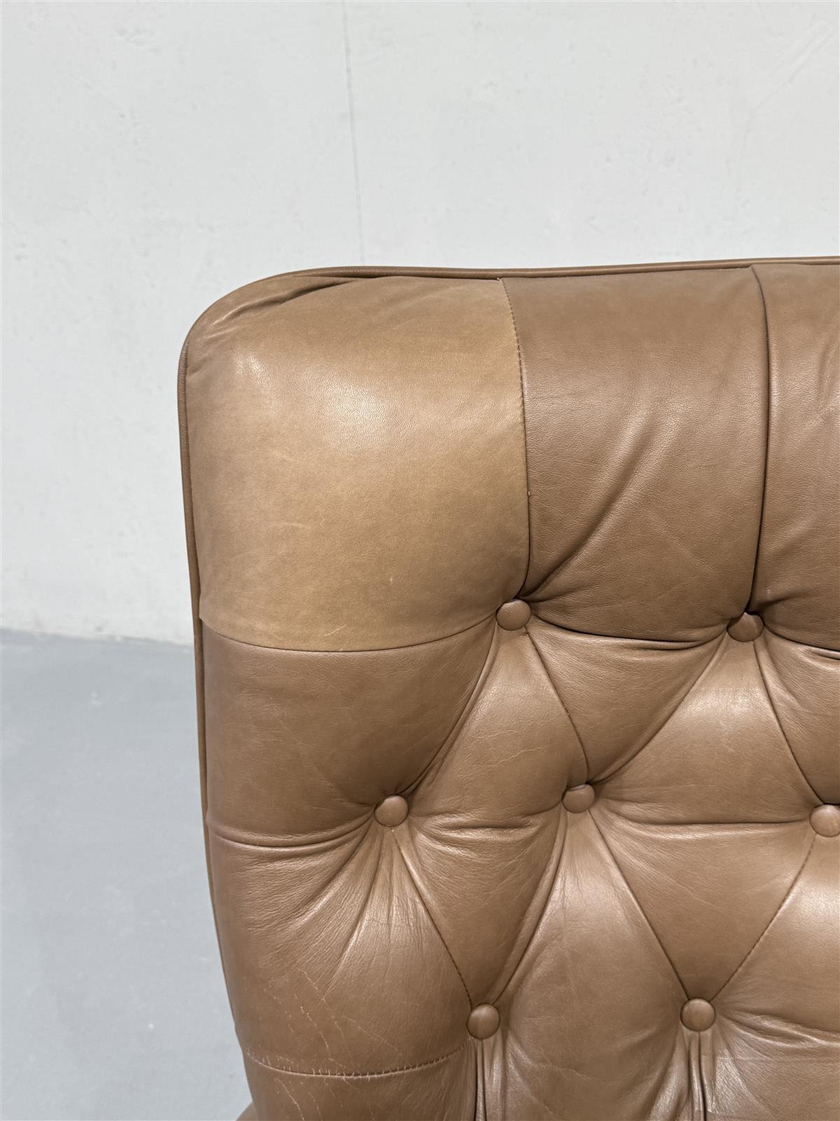 Selkänojassa yksi reuna paikattu, hieman eri värinen.