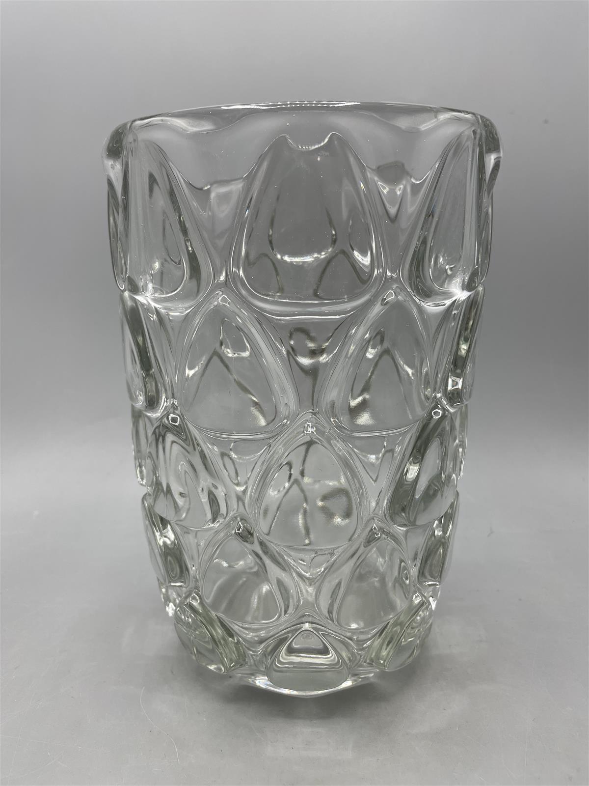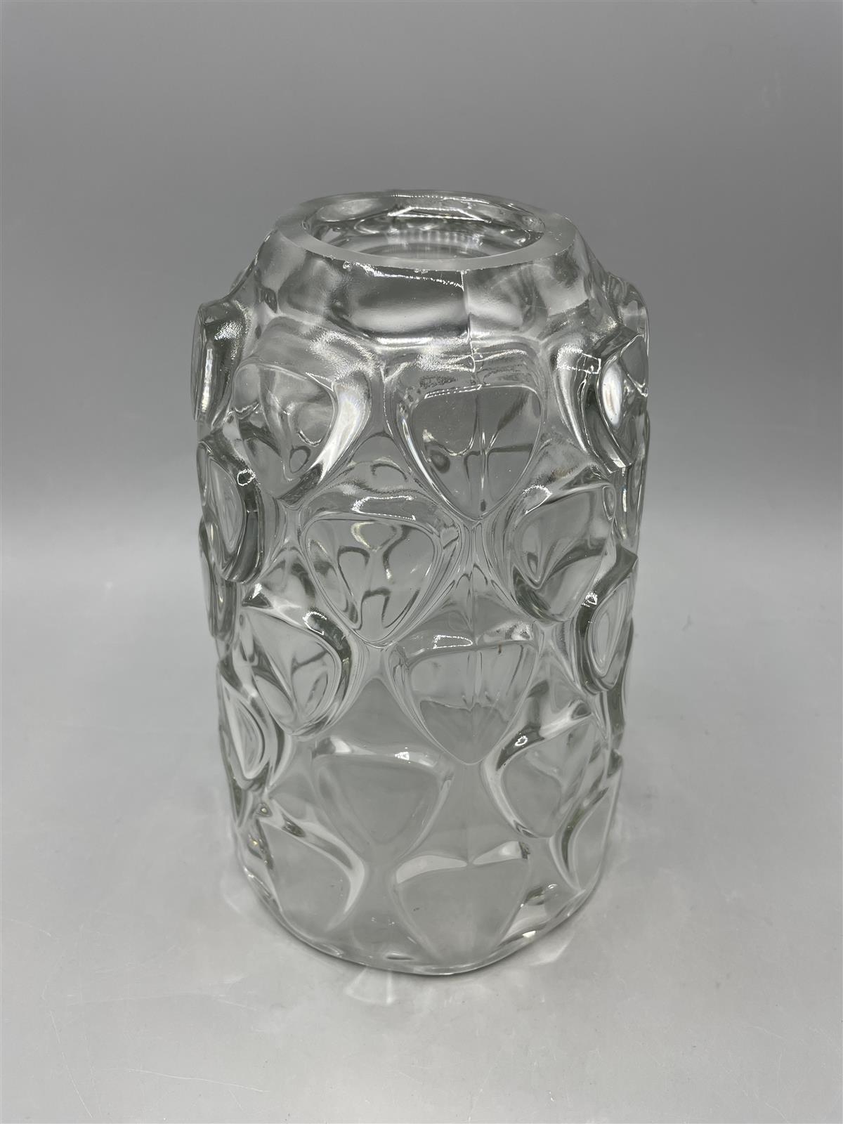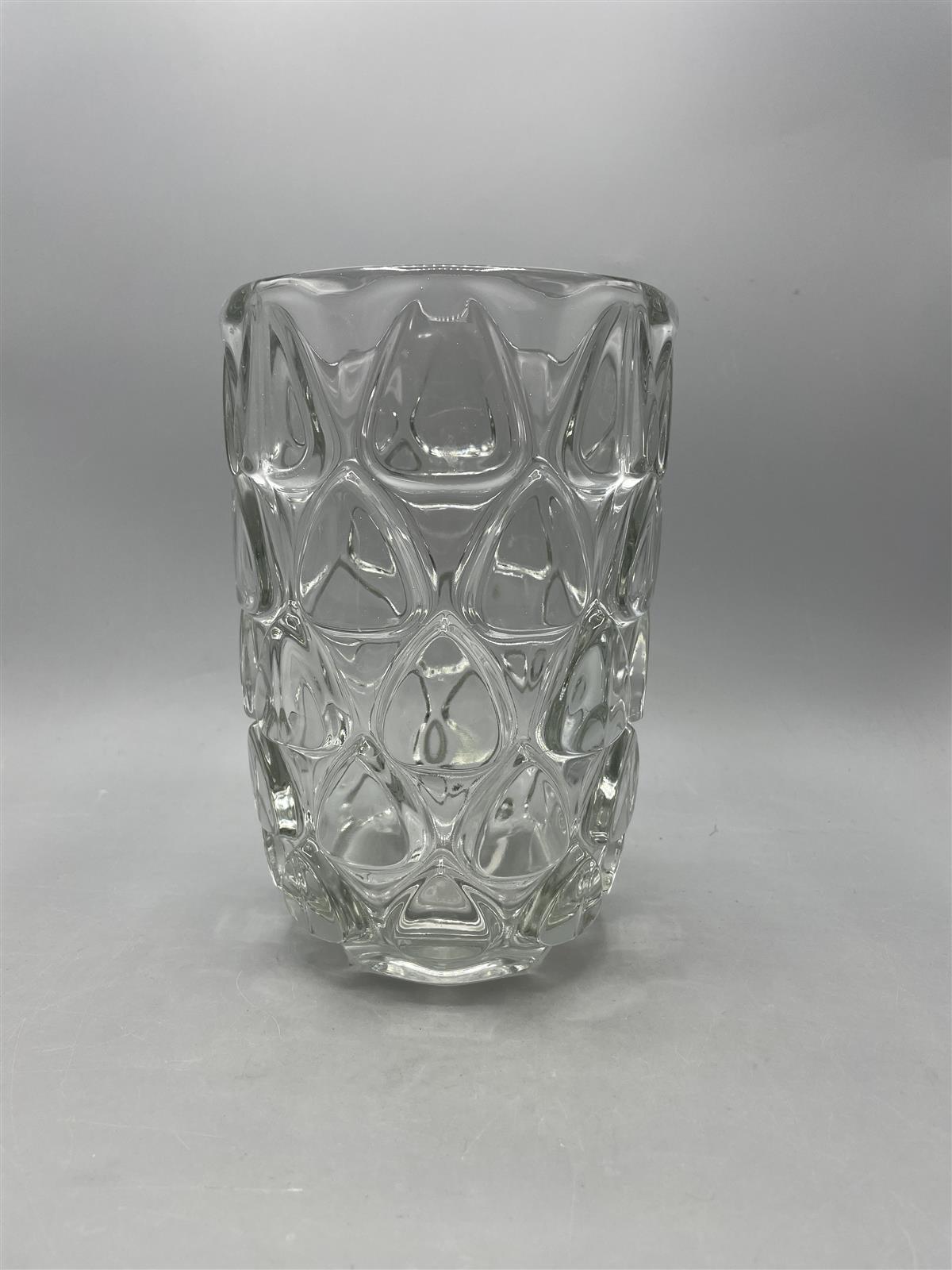 Tyylikäs paksulasinen maljakko, jossa on kohokuvioitu pinta.
