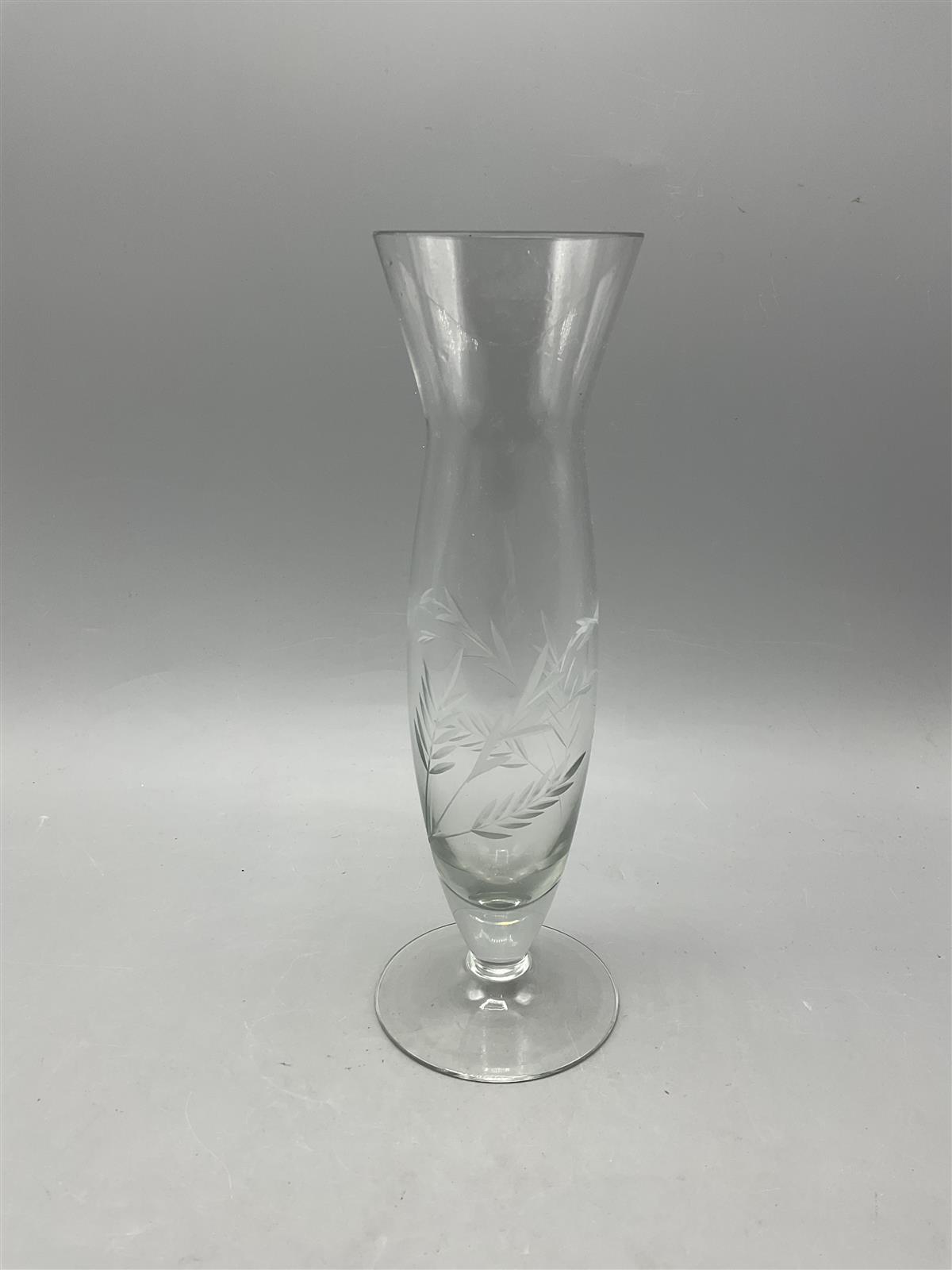 Lasimaljakko, jossa on kauniisti hiottu lehtikuvio.