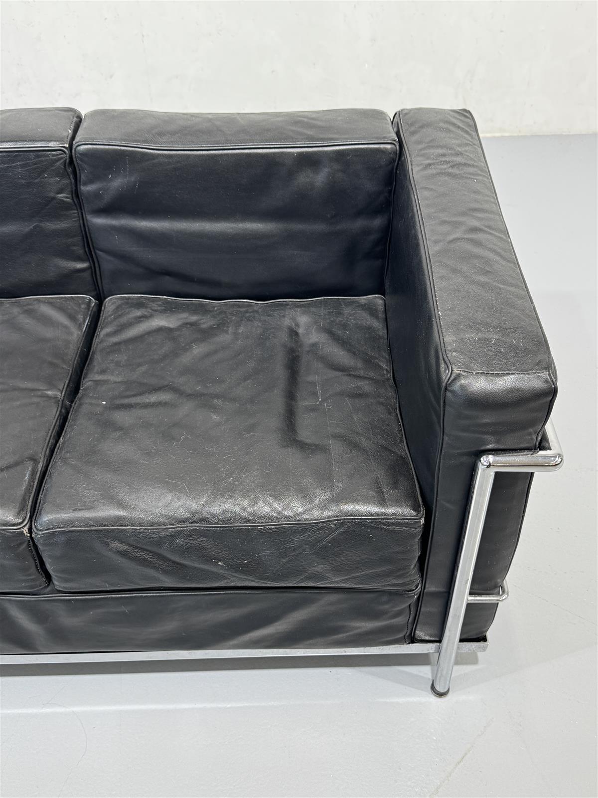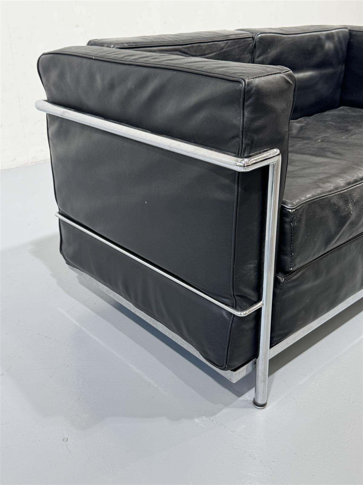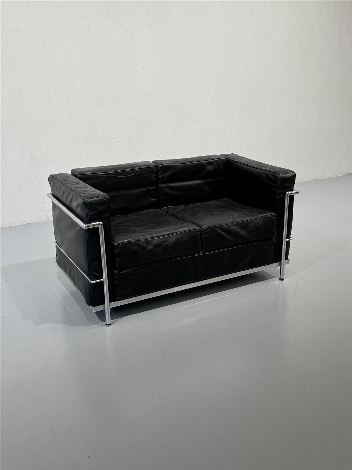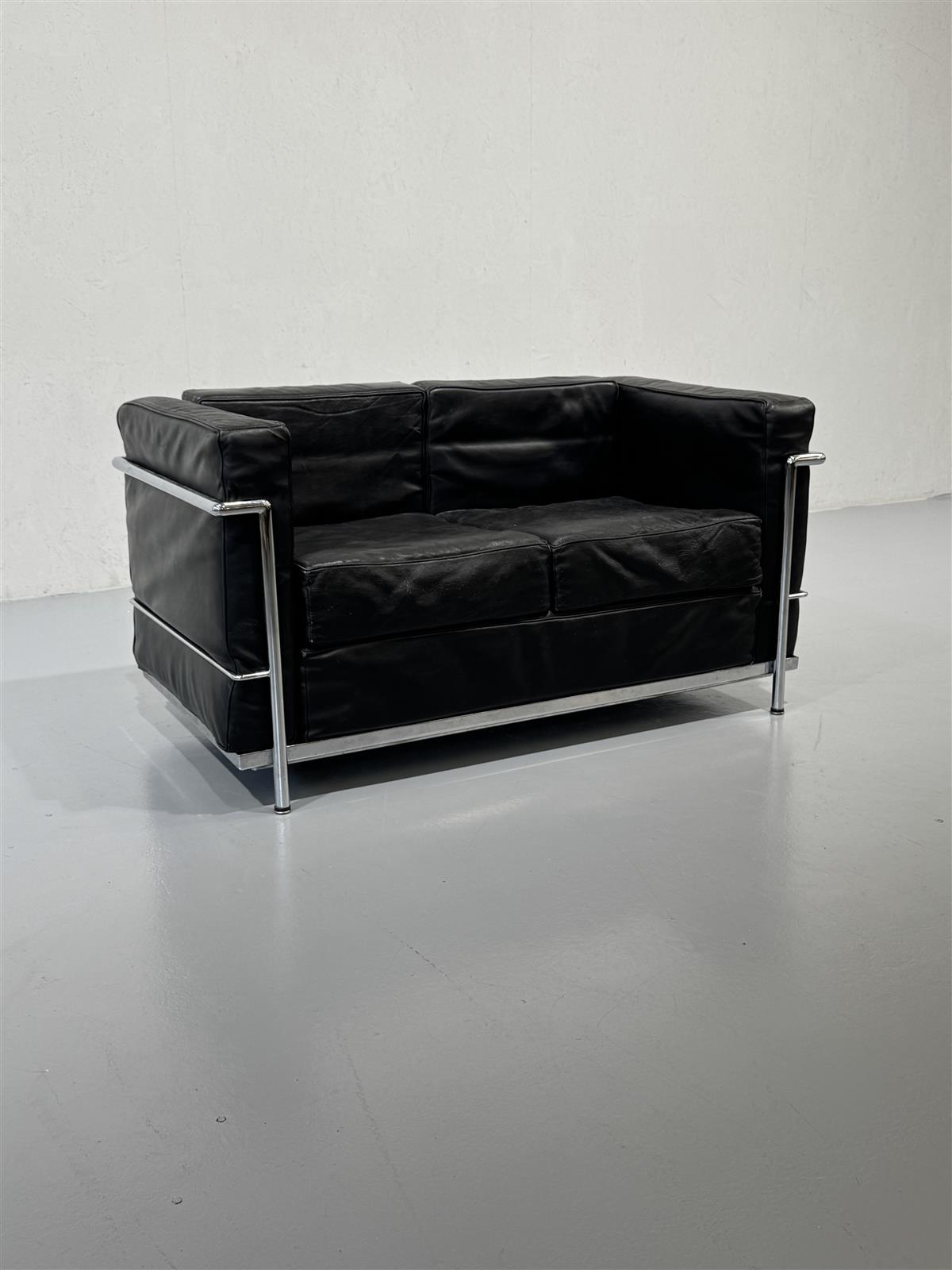 Tyylikäs replica nahkasohva. Sen teräsrunko ja musta nahkaverhoilu luovat ajattoman ilmeen, joka sopii monenlaisiin sisustuksiin. Tämä sohva replica Le Corbusierin”LC-2″ klassikosta.